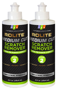 Rolite Meidum Cut Scratch Remover Restores, Polishes and Protects. Directions SHAKE WELL BEFORE USING. Hand Application - generously apply Rolite Medium Cut Scratch Remover and polish with firm pressure at right angles to the scratches using a clean microfiber cloth. Buff off immediately while still moist - do not let dry. Reapply as necessary then move to another section, or transition to Step 3 Rolite Ultra Fine Scratch Remover. Machine Buffing Application - use foamed wool or foam high gloss polishing pad. 1200 to 2000 r.p.m. Generously apply enough Rolite Medium Cut Scratch Remover to work a 2x2 area. To begin, buff using light pressure, and as finishing reduce pressure leaving the best possible gloss finish. Buff off immediately while still moist - do not let dry. Use clean, dry microfiber cloth to wipe off excess. Reapply as necessary then move to another section, or transition to Step 3 Rolite Ultra Fine Scratch Remover.