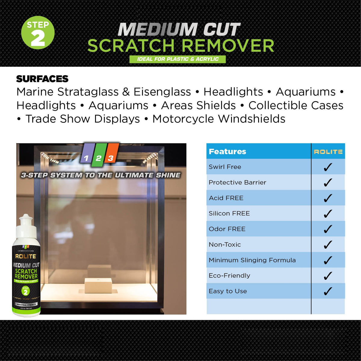 Rolite Medium Cut Scratch Remover (8 fl. oz.) for Plastic & Acrylic Surfaces Including Marine Strataglass & Eisenglass, Headligh