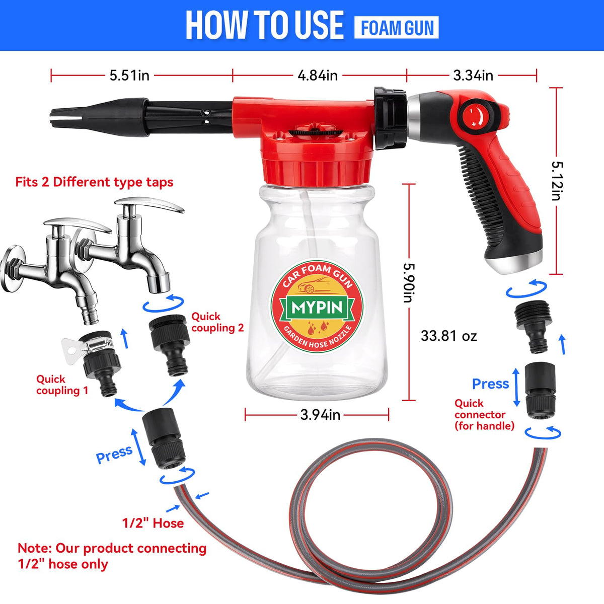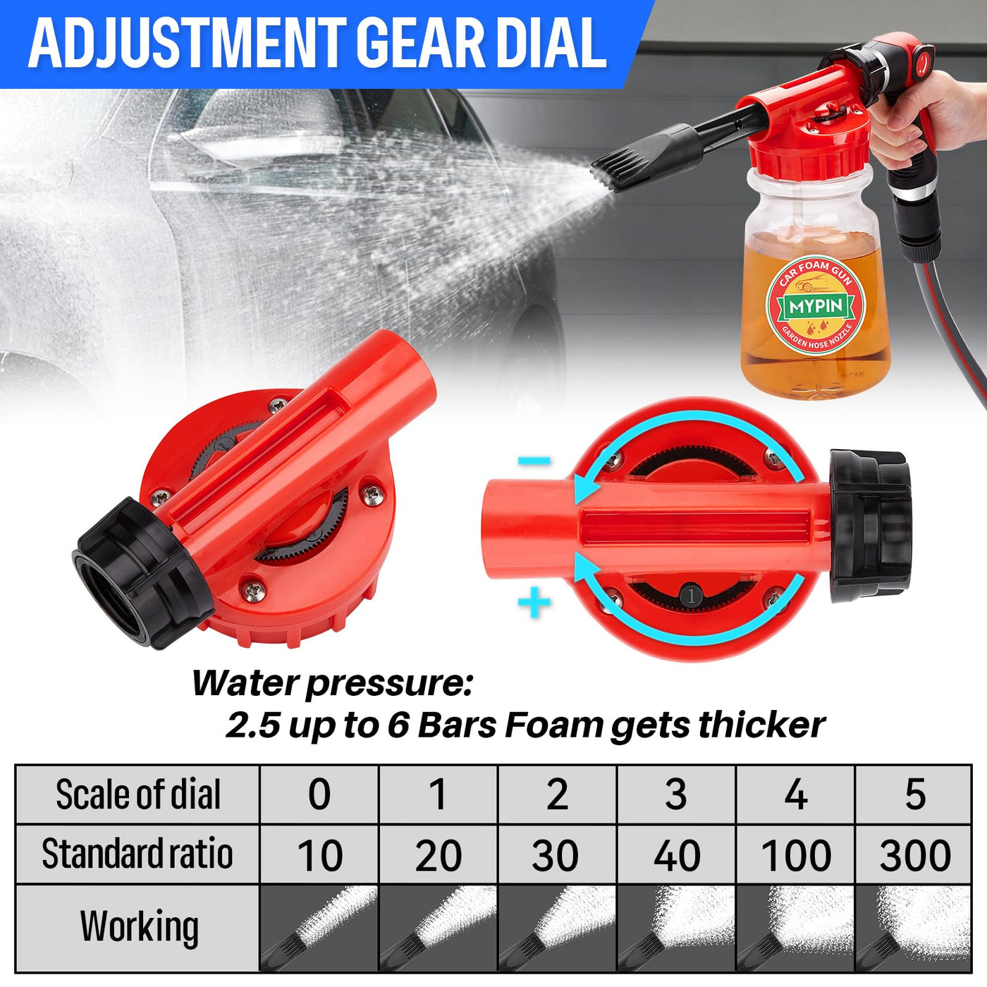 16 IN 1 Car Wash Foam Gun, Foam Cannon, Adjustable Hose Wash Sprayer with 2.5 to 6 Bars Foam Blaster, Suitable for Car Cleaning