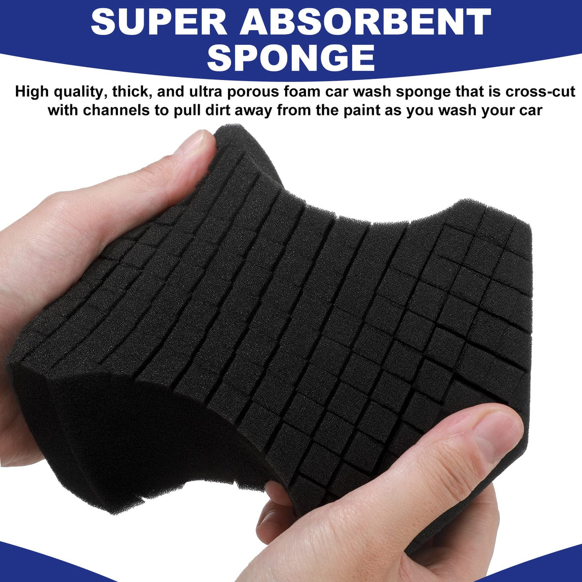 2 Pcs Ultra Black Car Wash Sponge Cross Cut Design Foam Sponge Softer Feel Black Sponge For Soap And Rinseless Washes, Car Detailing And Washing