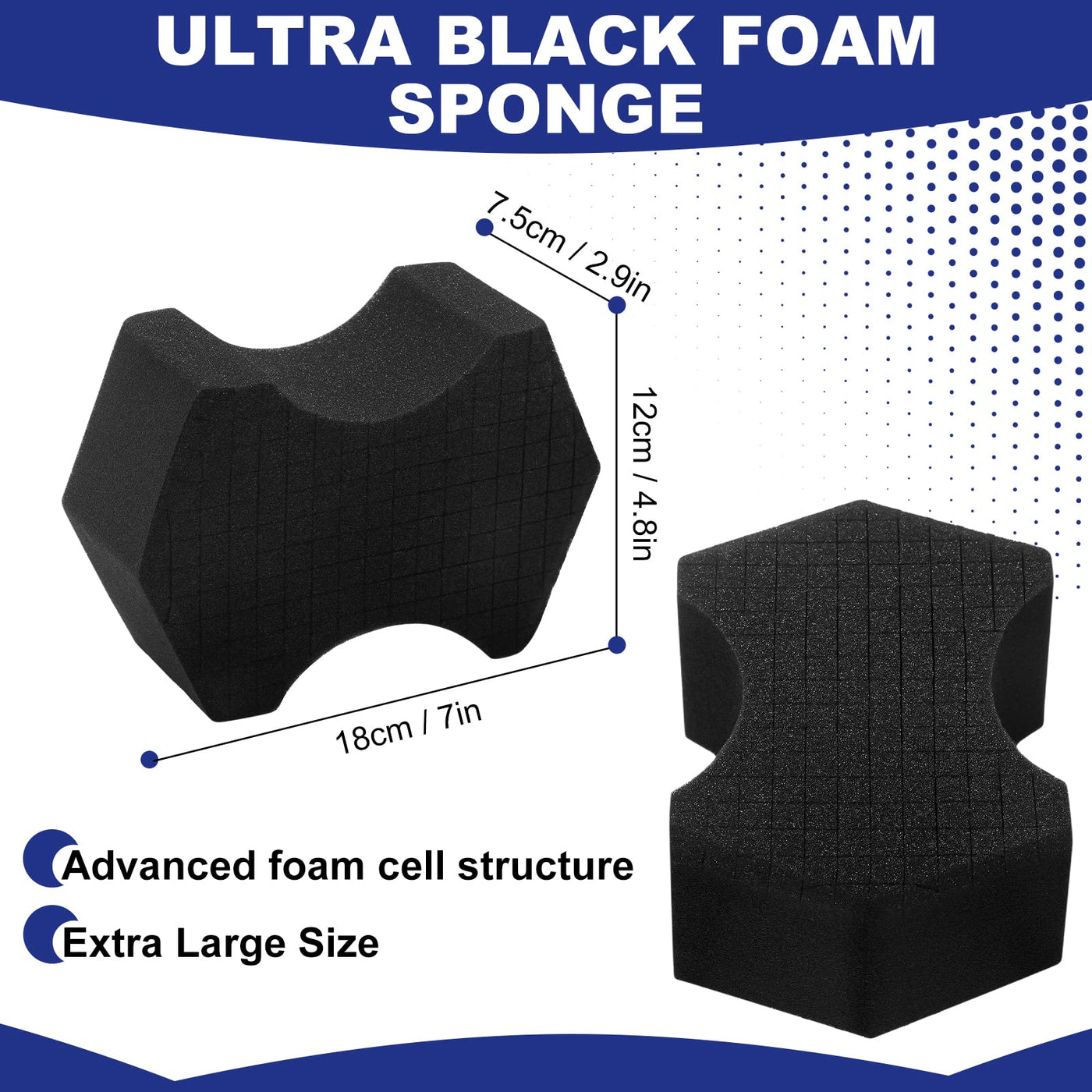 Q: What are the dimensions of the 2 Pcs Ultra Black Car Wash Sponge?A: The sponges measure approximately 7.1 x 4.7 x 2.9 inches (18 x 12 x 7.5 cm), making them large enough to cover a significant cleaning area.