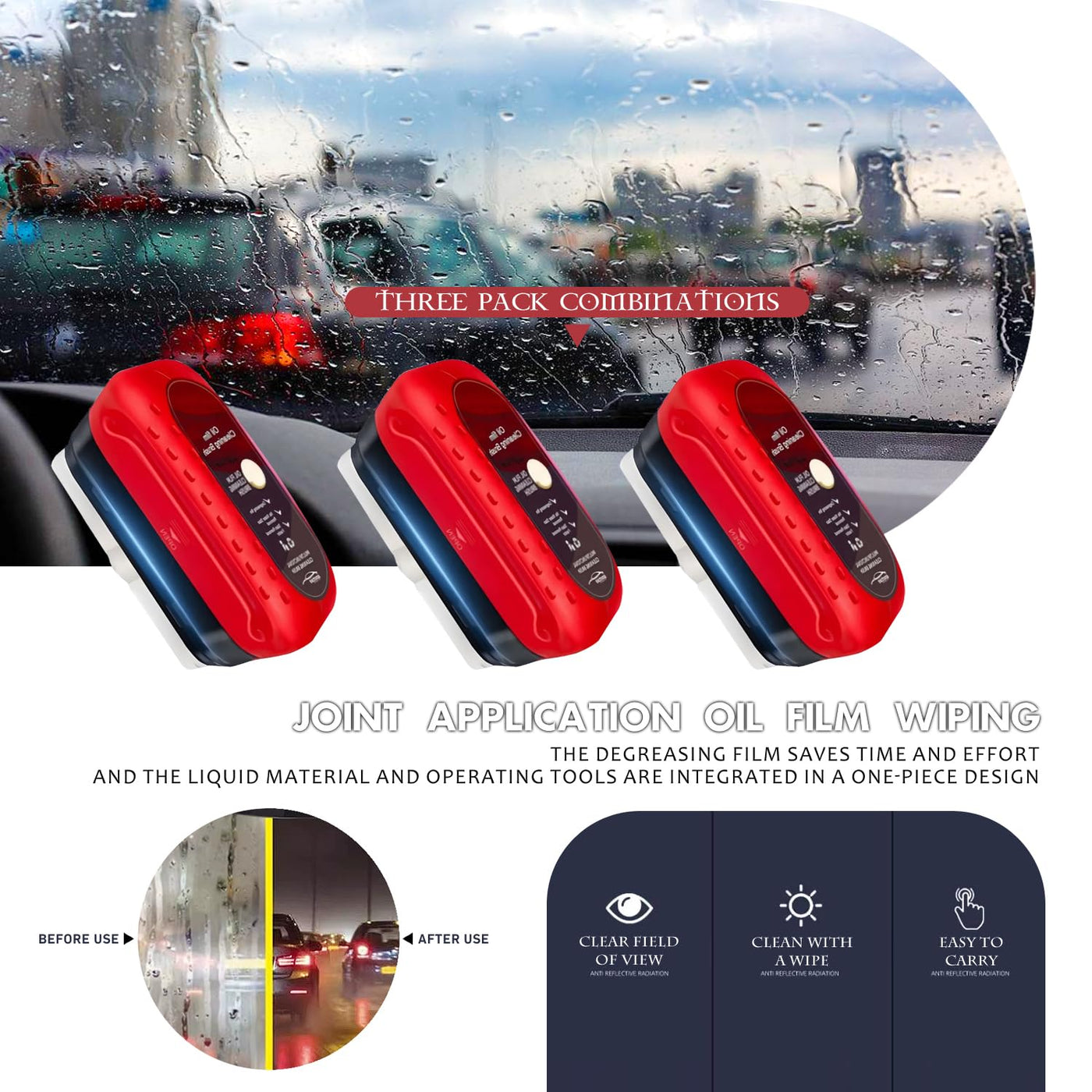 3-Pack Automotive Glass Oil Film Cleaner,Upgrade Vehicle Glass Cleaning Brush with Integrated Fluid Applicator,Removal Solution,