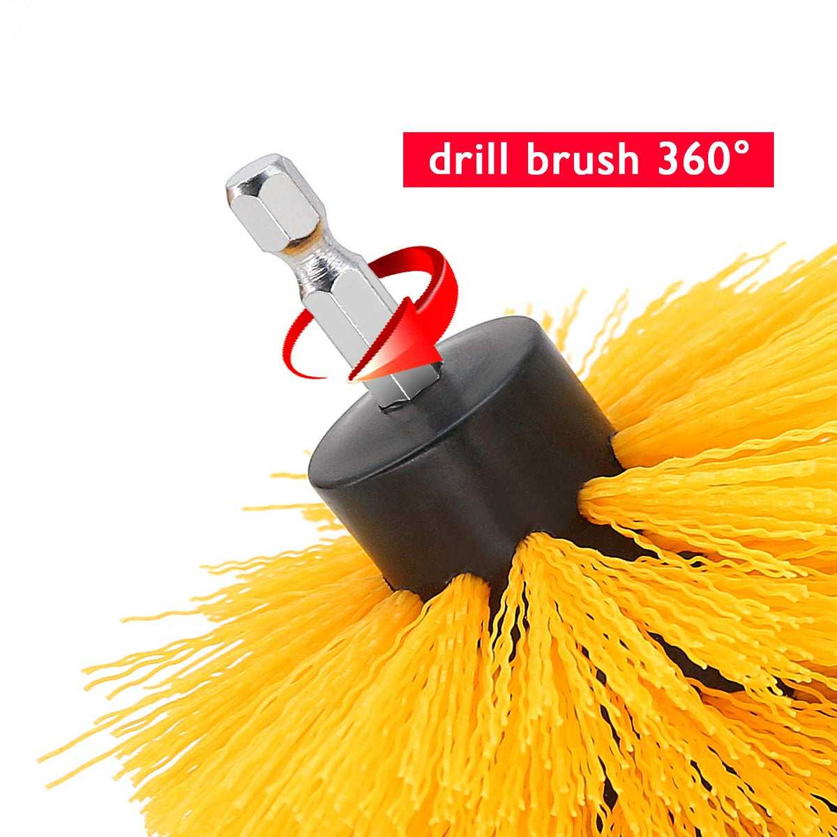 These Drill Brush Attachments Set Is Expertly Designed To Clean Bathroom Surfaces, Grout, Upholstery, Wheels, Tile, Shower, Toilet, Kitchen, Bathtub, And Carpet, Etc. Nylon Bristles Will Not Scratch Your Bathtub And Shower Tile Surfaces. This Kit Includes 5 Brushes Of Different Sizes And Shapes To Fit Into Most Of The Cordless Drills. Each Drill Brush Of Home Power Scrubber Set Has Its Special Shape And Size, Perfect For Powered Scrubbing On Kitchen Surfaces, Bathroom, Tubs, Showers, Sinks, Water Pool Tile, Grout, Fiberglass, Home, Auto, Boat And Etc. Can Be Used In Any Cleaning Projects Indoors And Outdoor, Great For So Many Different Cleaning Tasks All Year Round. Material: Metal Shaft, Nylon Bristles Color: Yellow Size: 2 Inch,3.6 Inch,4 Inch,5 Inch*2 Metal Shaft Diameter: 1/4'' Qty: 5Pcs/Set Electric Drill Is Not Included. Due To Manual Measurement,Please Allow 1-5Mm Errors.