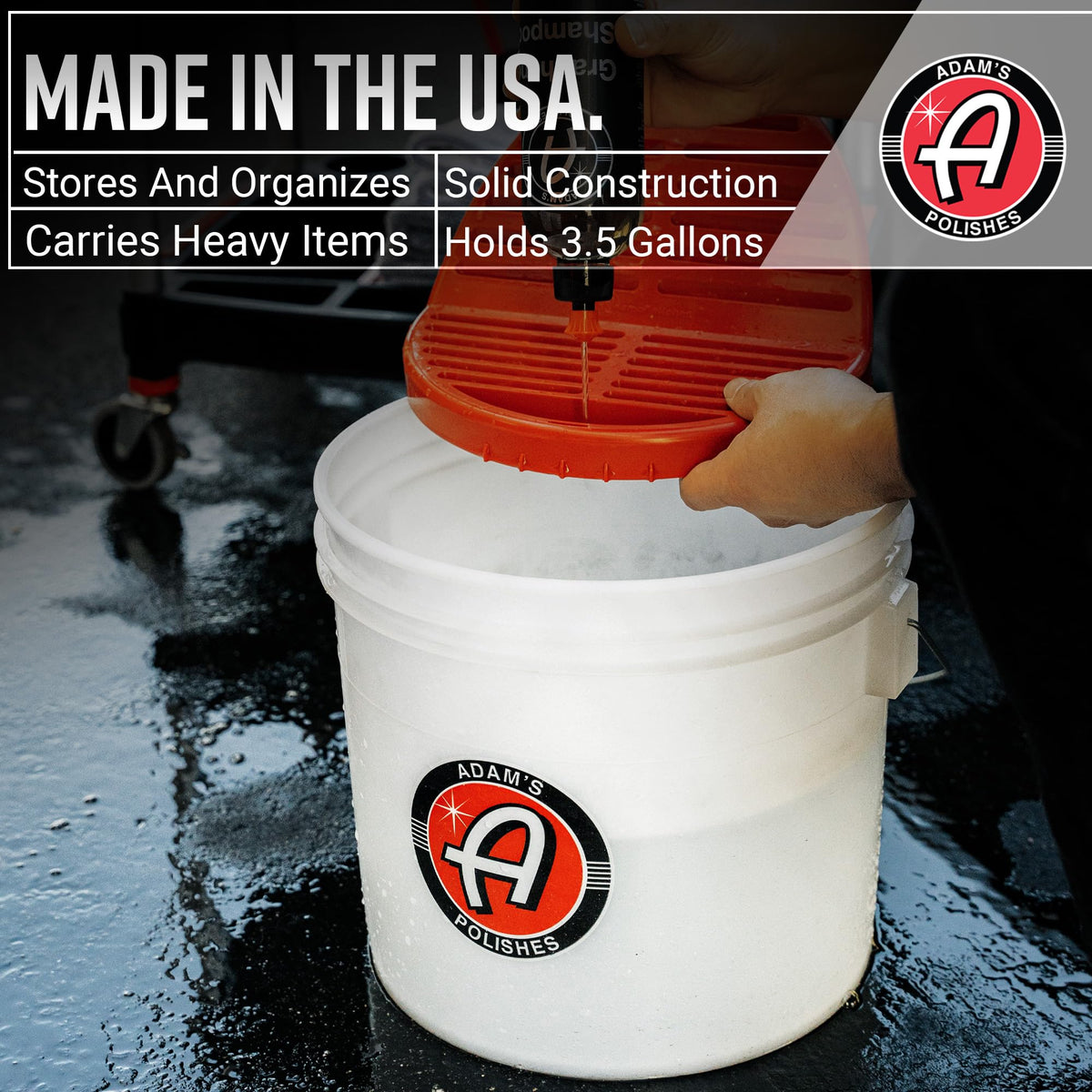 Adam's Polishes Grit Guard Insert fits perfectly in the bottom of your wash bucket and serves as a washboard for your wash pad, wash sponge, or wash mitt by keeping dirt off your pad and your vehicle. For best results, rub the wash pad along the grit guard each time you dunk for more suds.The Gamma Seal Lid is great if you ever need to transport your bucket or need a place to sit.