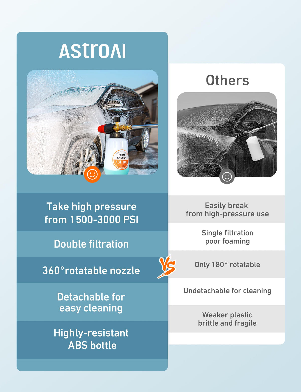 The AstroAI Foam Cannon is a fun and easy tool for washing any vehicle. Can be used for Car, Motorcycle Washing,floors,Windows and so on. Ideal for enthusiast or professional use.