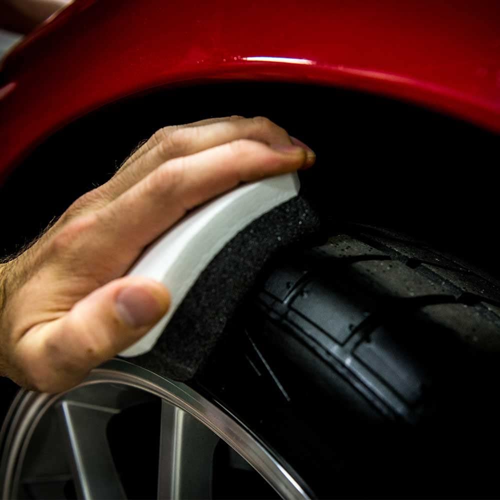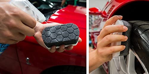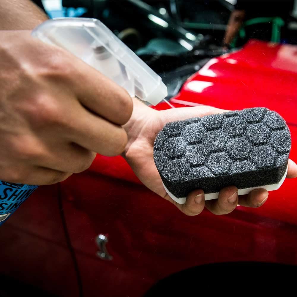 Q: How does the Hex Logic design benefit product application?A: The Hex Logic grooves on the applicator pad help spread product more evenly and efficiently than traditional flat foam pads, ensuring a consistent application of tire shine or protectant.