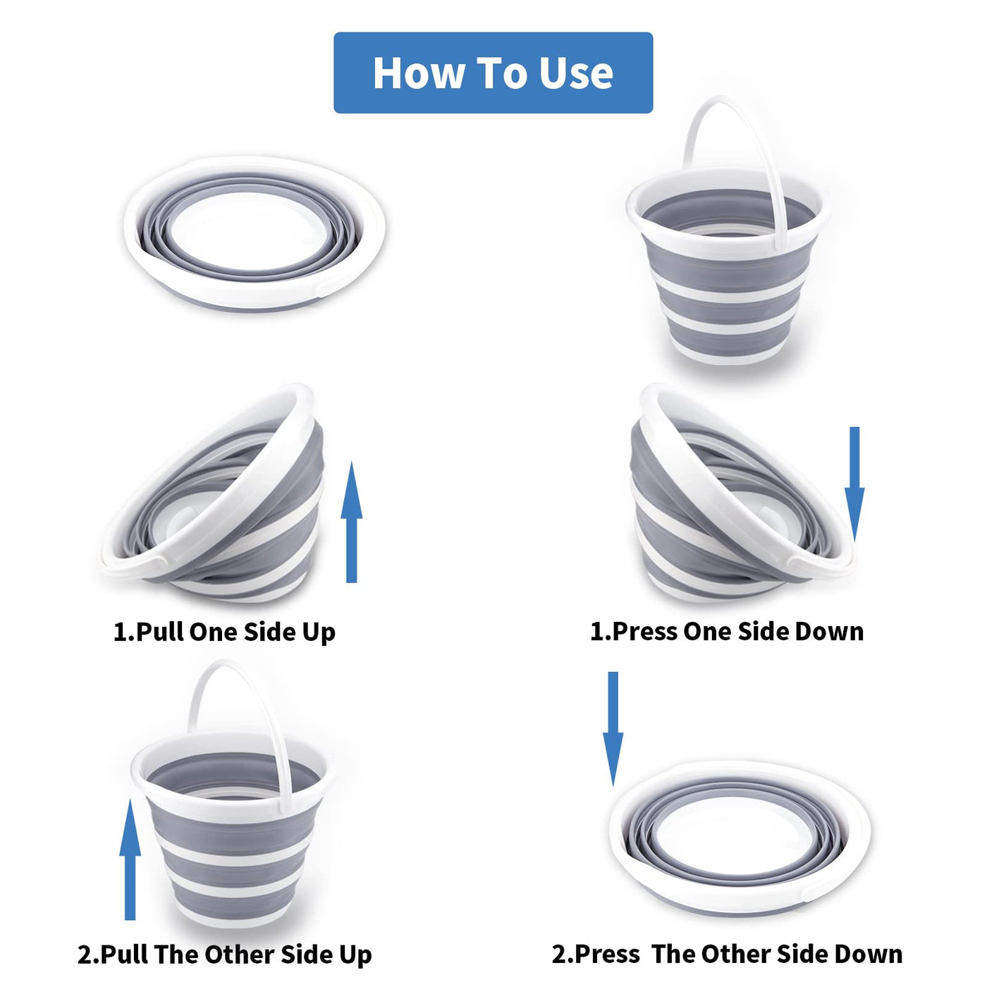 Craftend Collapsible bucket BPA Free,Collapsible buckets is the perfect addition to your home and camping essentials for easy storage and transport.Collapsible bucket with handle makes it easy to move when filled, Cleaning bucket features a groove for smooth pouring and is featuring a space saving design folds down flat in seconds,Which is perfect for storing in compact spaces.Space saving:Foldable bucket size 13x13x10(h) inches and its height just 1.9 inches after folds,Save over 70% space when storage,Capacity:10L/2.6 gallon.Strengthen Folding bucket Safe and portable,extremely convenient,Ideal for small apartments,Kitchens,bathrooms,laundry room,cleaning around the home and other narrow spaces.You can use folding bucket for home and outdoor activities,Perfect for such as cleaning bucket,mop bucket,water bucket,camping bucket,fishing bucket,car wash bucket,laundry bucket,plastic bucket,beach bucket,bathroom bucket,garden bucket,outdoor bucket,pop up trash can,hiking etc.