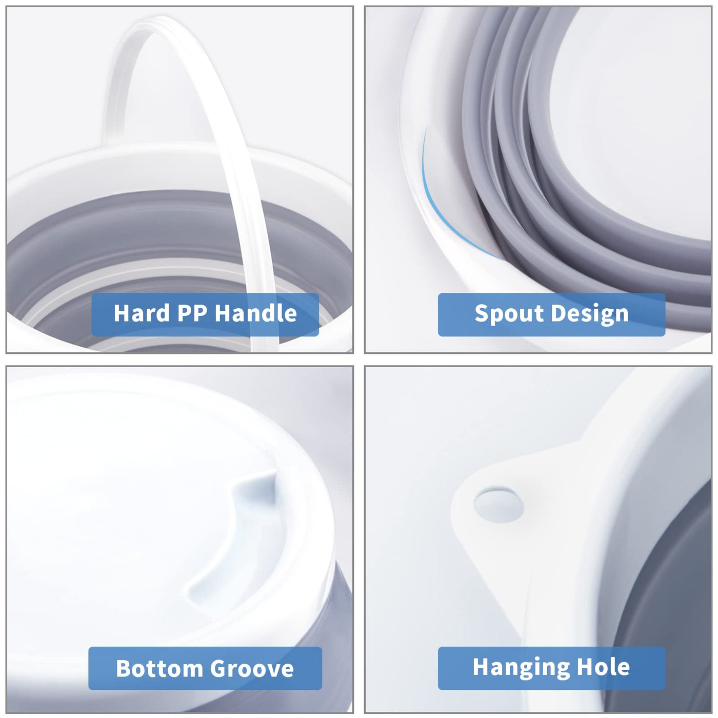 Q: How does the collapsible feature work for storage?A: This bucket features a space-saving design that allows it to fold down to a height of just 1.9 inches, saving over 70% of storage space compared to traditional buckets.