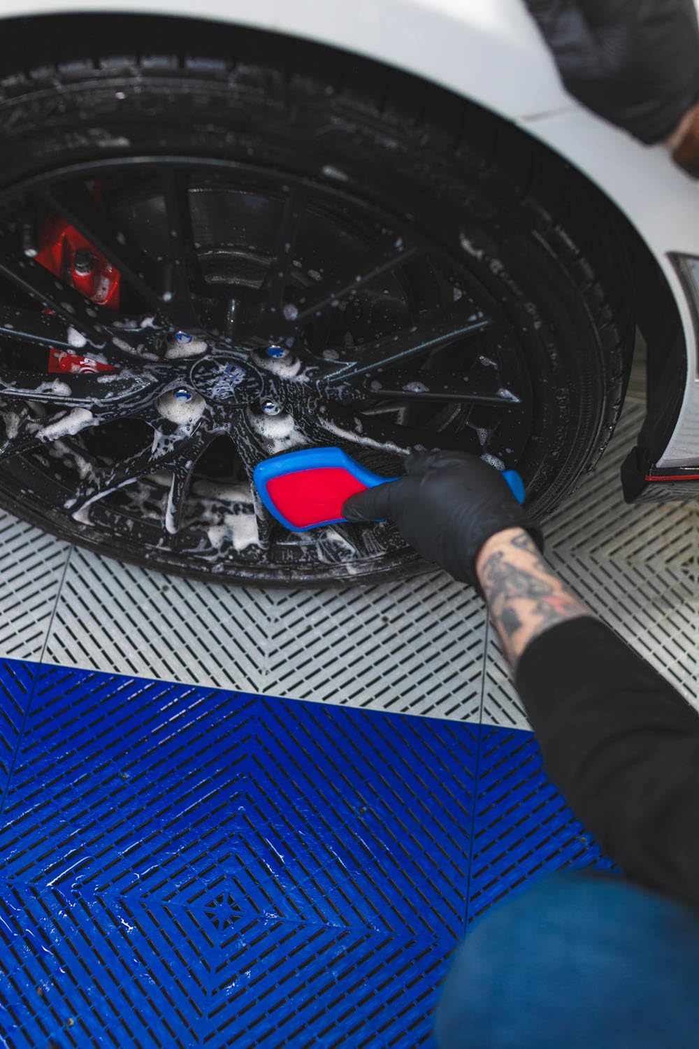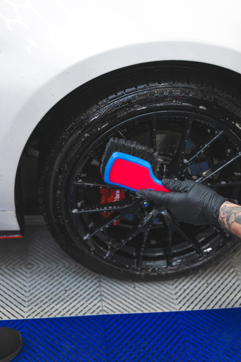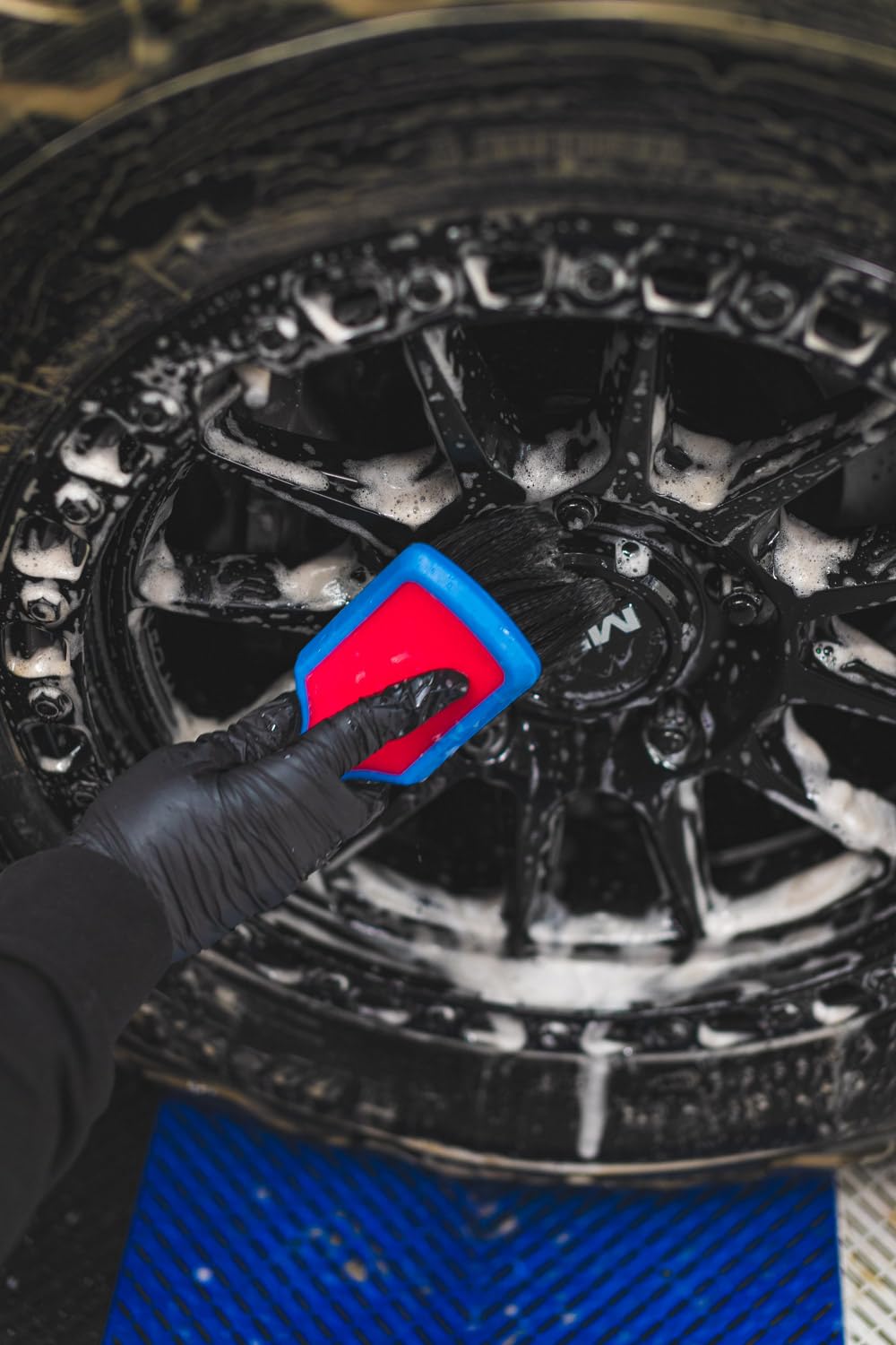 Flagged-tip bristles provide better surface coverage, prevent scratching, and improve lathering. This wheel brush gets the job done right! | Ergonomic ProGrip rubberized handle design is easy to hold and reduces fatigue. Makes for the perfect wheel cleaner brush. | Chemical-resistant bristles won't scratch or mar your wheel surface. Experience our safe and effective wheel brushes for cleaning wheels. | Rubberized head prevents damaging delicate wheel finishes | DETAIL FACTORY - Our mission is to create the highest quality professional-grade auto detailing and cleaning equipment on the market. Our products are designed, patented, built & shipped in the USA.