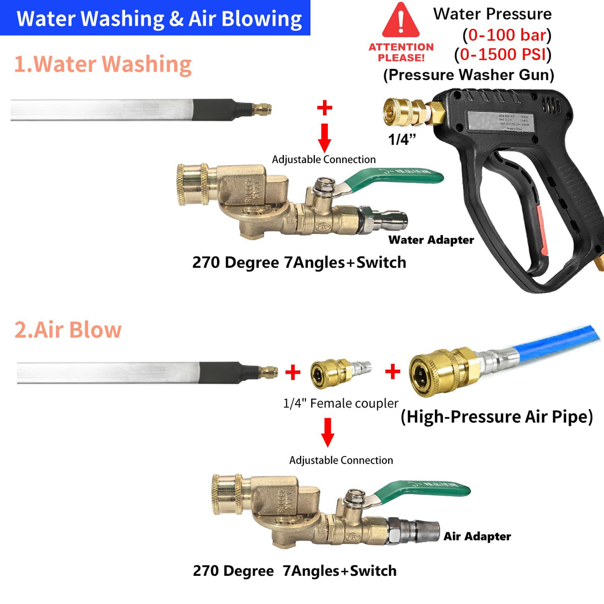 Lucstar Radiator Cleaning Wand,Radiator Genie Water Air Cleaning Wands, 24 Wand+ 7 Angles Coupler+ Valve Switch, Air Fin Comb Cl