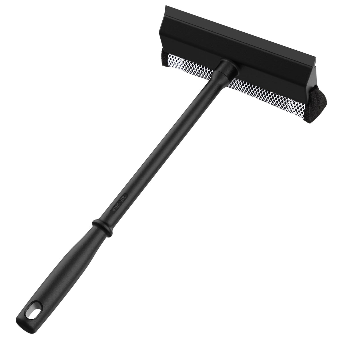 Mr.Siga Professional 2-In-1 Car Window Squeegee And Sponge Scrubber For Cleaning And Washing, Rubber Blade Cleaner With Handle,