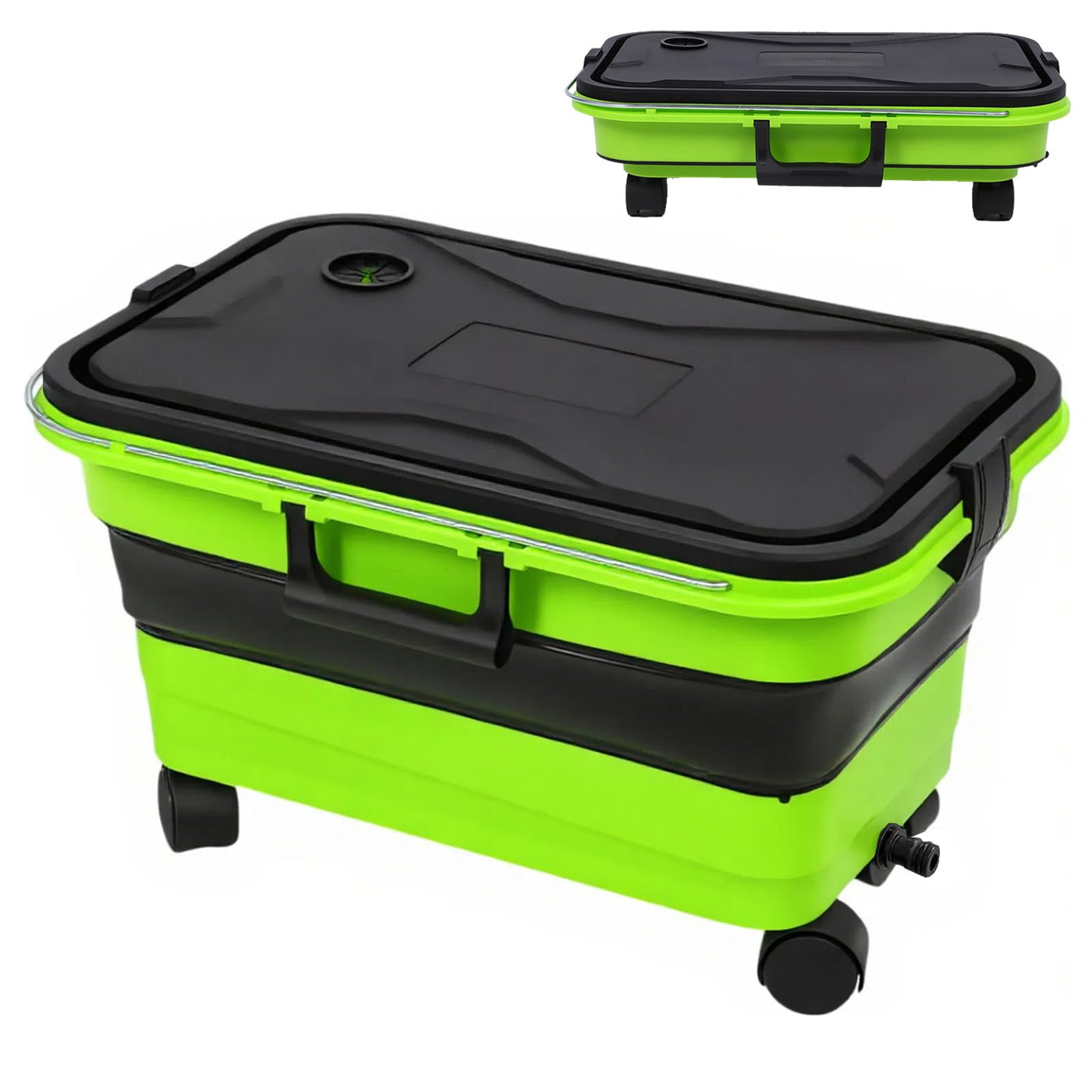The 5.5 Gallon Collapsible Car Wash Bucket Is The Ultimate Solution For Car Washing And More. With Its Large 5.5-Gallon Capacity, This Bucket Ensures You Have Enough Water For A Full Car Wash, While Its Locking Lid Doubles As A Storage Bin For Your Detailing Kit. The Smart Side Outlet Connects Directly To Cordless Pressure Washers, Making It Ideal For Use Even In Areas Without A Water Hose. Designed For Portability, This Collapsible Bucket Folds Down To Just 4.8 Inches And Features Four Detachable Swivel Wheels And An Extended Handle For Easy Maneuvering. Made From Durable Pp And Silicone Materials, ItS Built To Last, With A Dual Drainage System For Easy Water Disposal. Whether For Car Washing, Camping, Pet Bathing, Or Even As A Portable Sink Or Cooler, This Versatile, Compact Bucket Is Your All-In-One Solution For Home, Travel, And Outdoor Adventures.