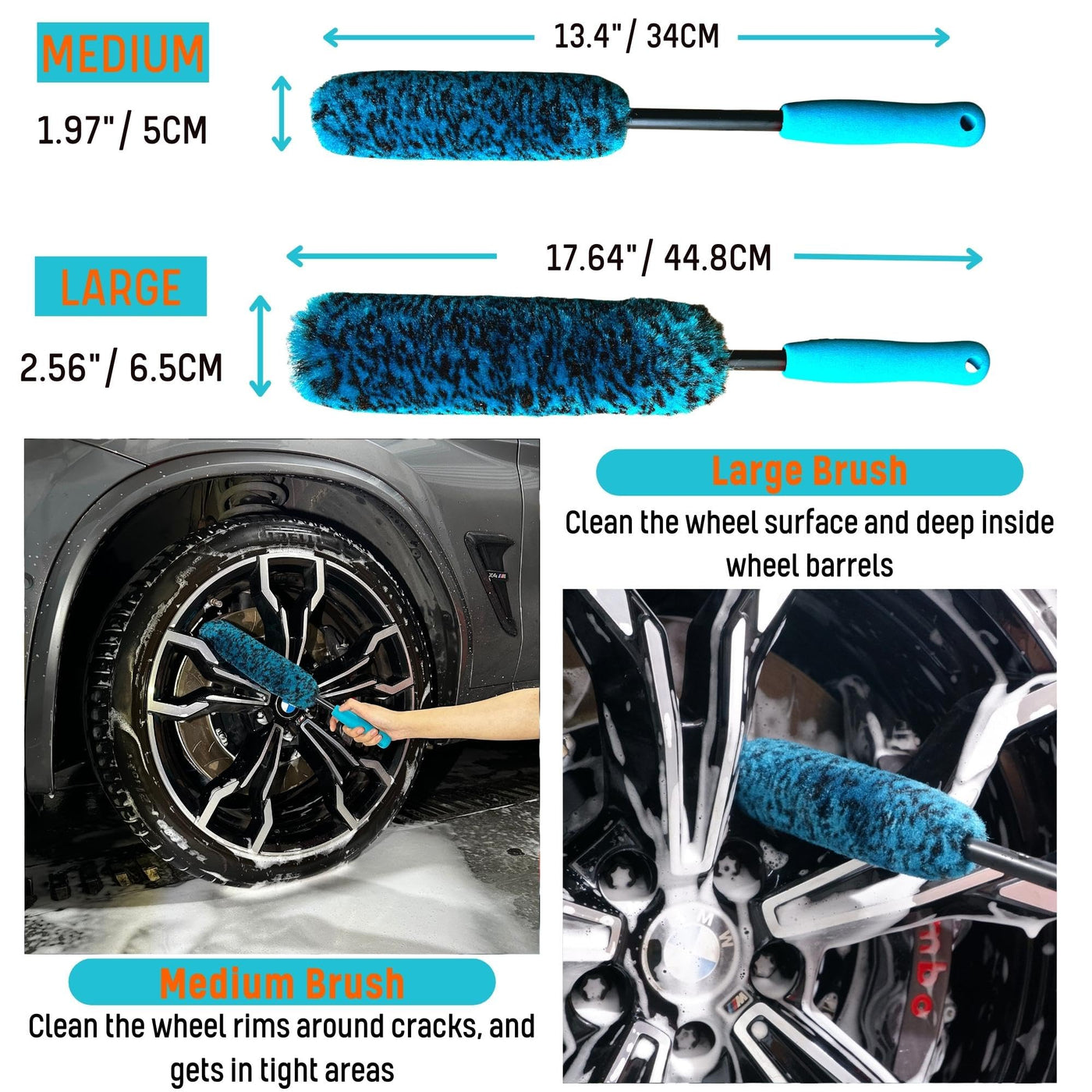 oesee PRO Choice 4 Pack Long Handle Wheel Brush Kit for Cleaning Wheel and Tire- 2X Soft Wheel Cleaning Brush, Detailing Brush a