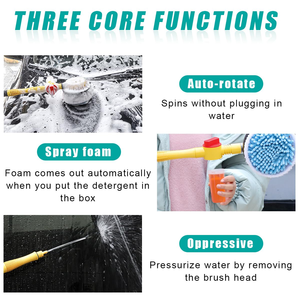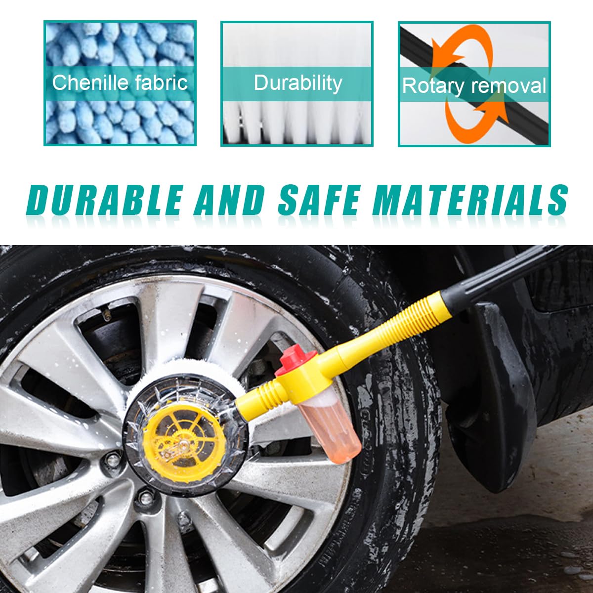 povtii Rotating Car Wash Brush, 360 Spin Auto Cleaning Brush with Long Handle, Detachable Washing Brush with Soft Chenille Brist