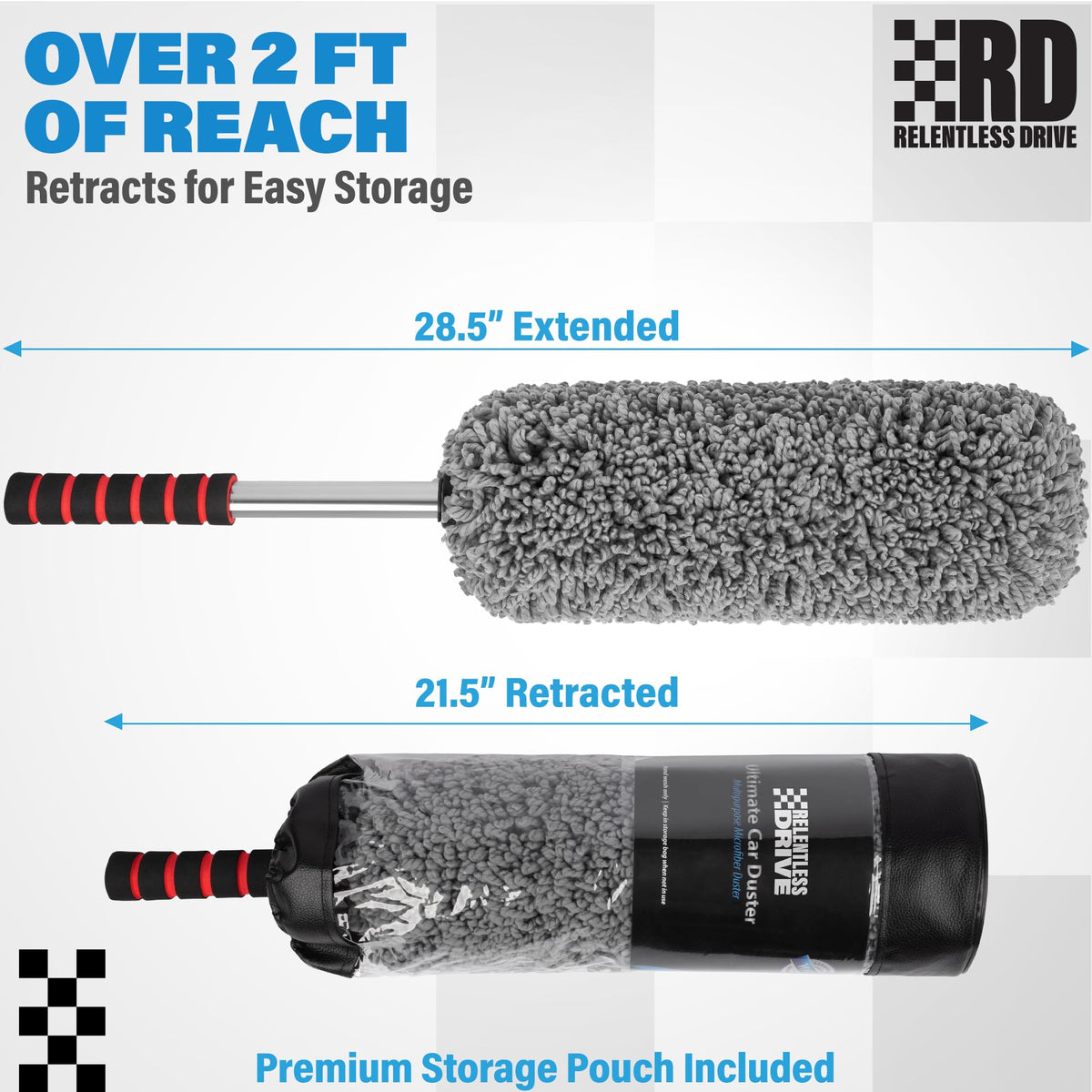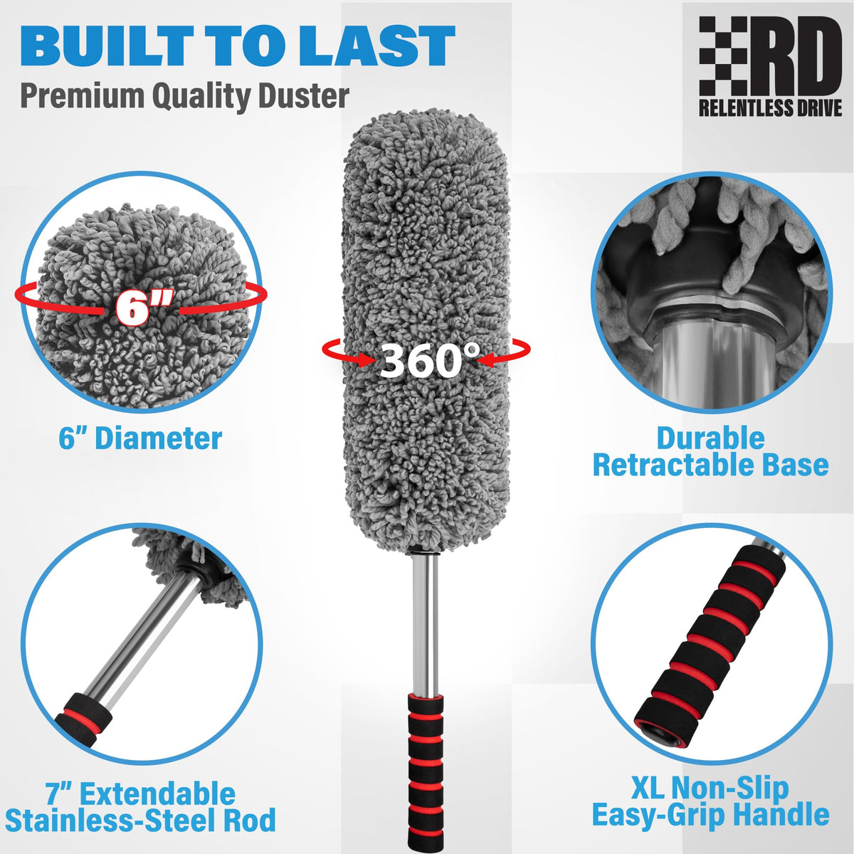 Relentless Drive Car Duster Exterior Scratch Free - Car Accessories For Women & Men - Cleaning Supplies With Premium Microfiber Includes Extra Large Extendable Handle