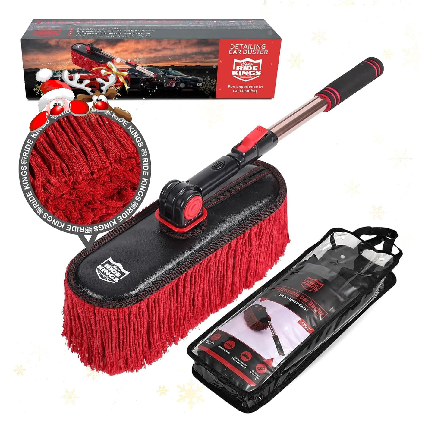 Q: Can this car duster be stored easily when not in use?A: Yes, the Ride Kings Car Duster comes with a portable storage cover that allows for convenient transportation and simple storage in your car's trunk, making it easy to access whenever you need it.
