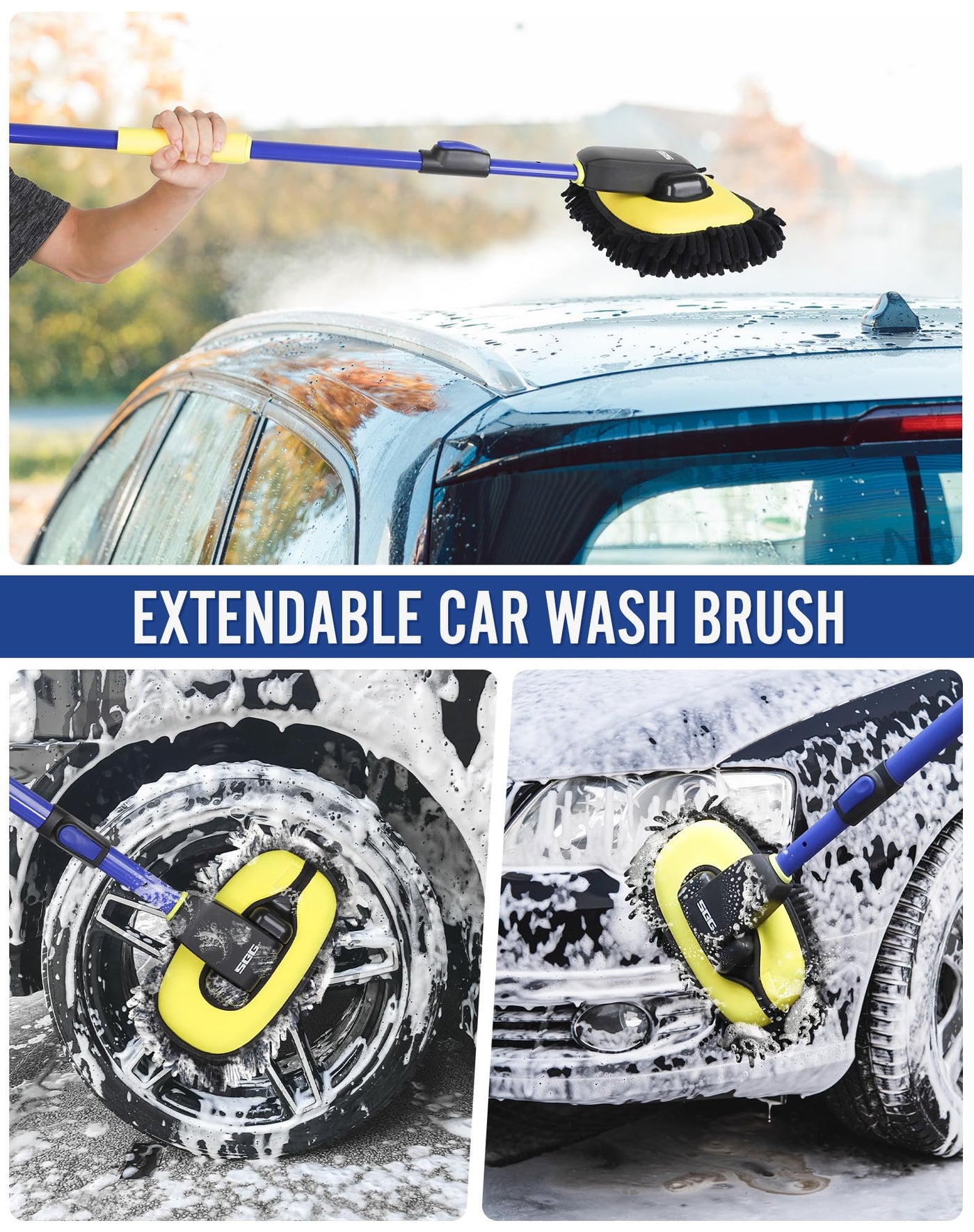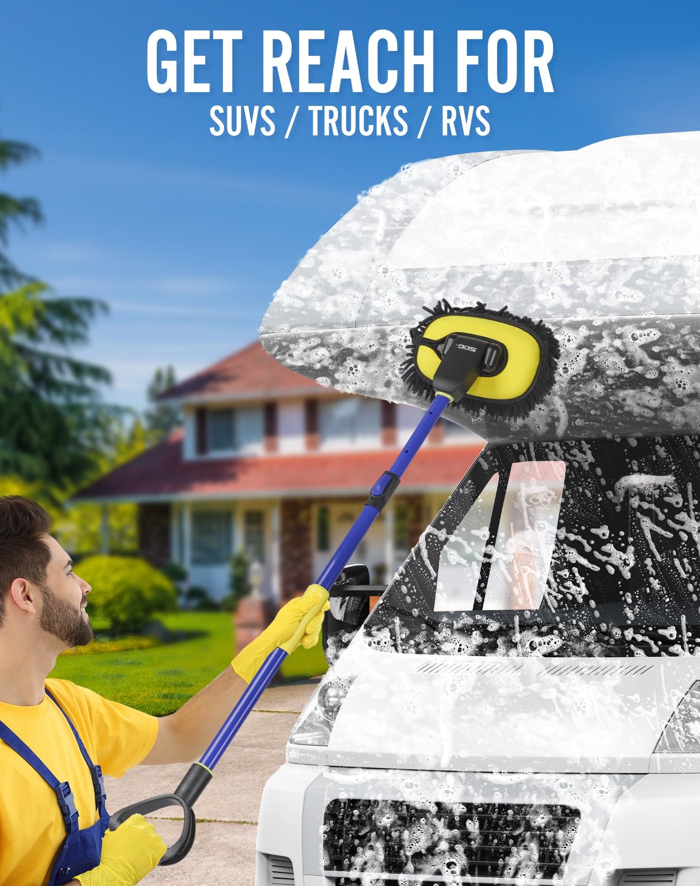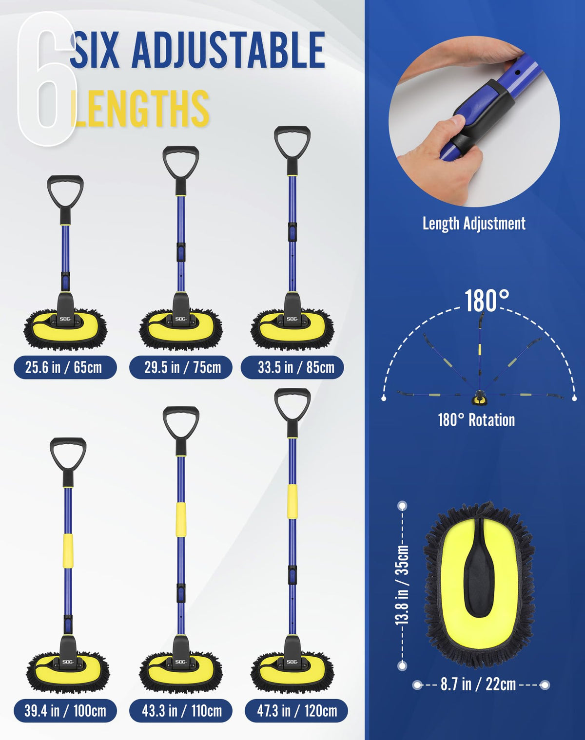Seg Direct Car Wash Brush Mop Kit Extendable With Long Handle, Detachable Pole, D Shaped Grip, Chenille Scratch-Free Replacement