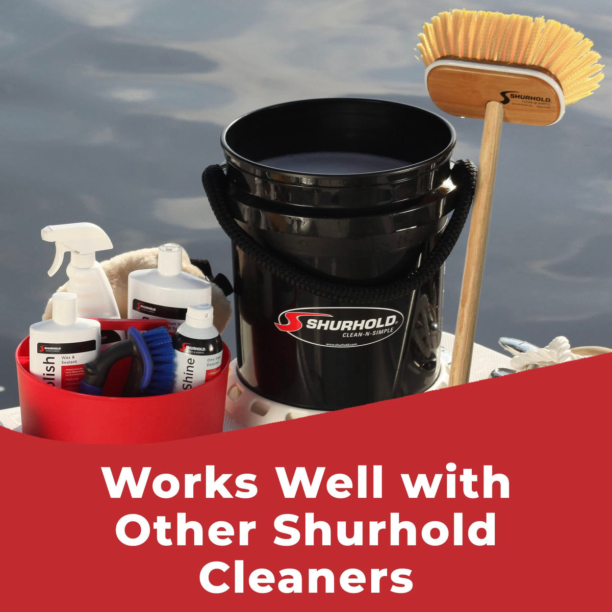 The World's Best Deck Brush! Built to Shurhold's famous quality standards, this popular version of the classic Shurhold 6-inch brush comes with a 48-inch theaded wooden handle and is perfect for under gunnel storage.The brush is carved out of a solid wood block and has a rubber wrap around bumper to prevent marking surfaces. This soft textured brush features yellow polystyrene bristles with split end fibers, safe on gelcoat, clear coat, fiberglass and paint.