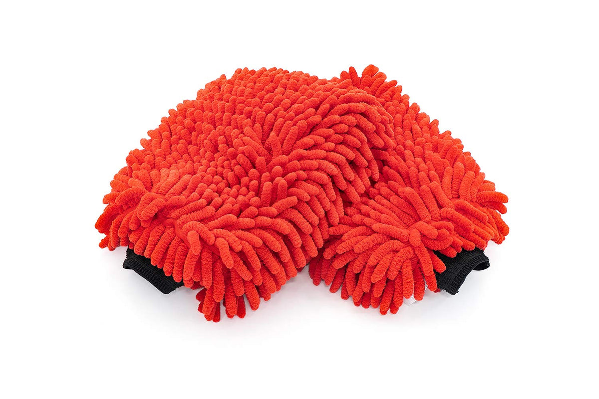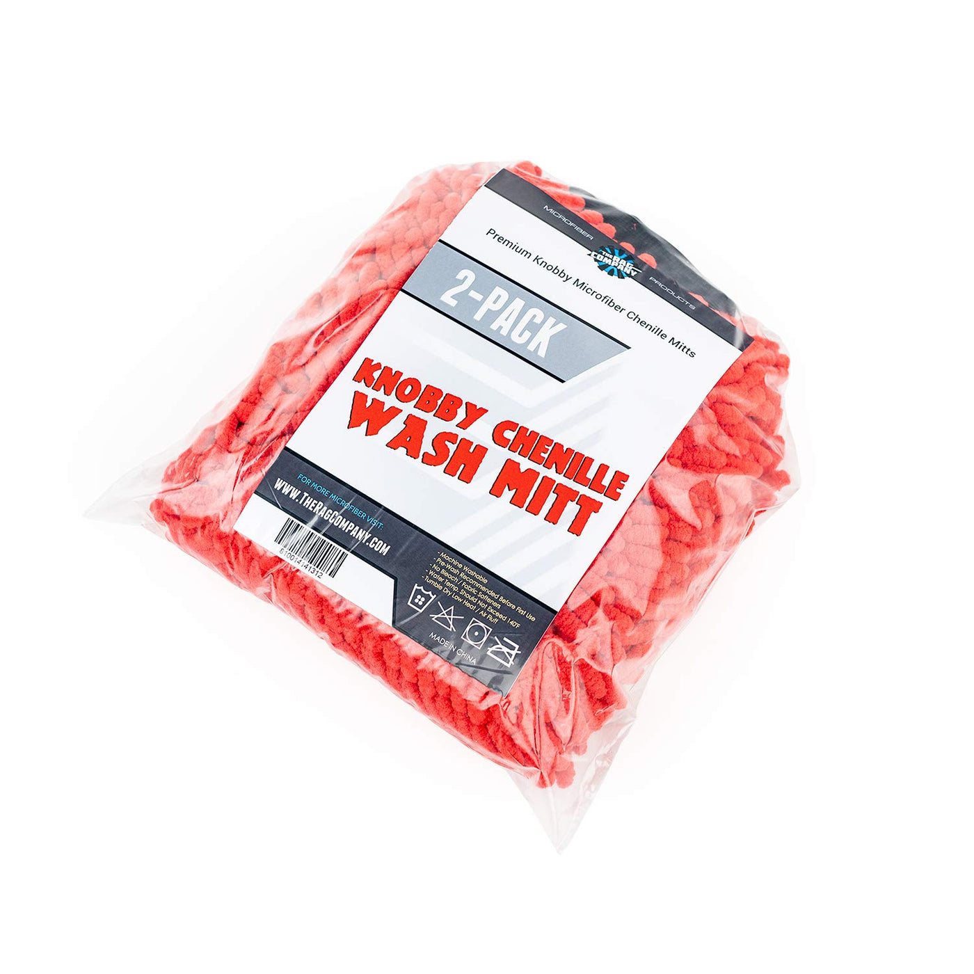 The Rag Company - Premium Chenille Microfiber Knobby Wash Mitts - Perfect For Car Washing And Detailing; Scratch-Free, Lint-Free, Double-Sided, Plush, And Absorbent; Red (2-Pack)