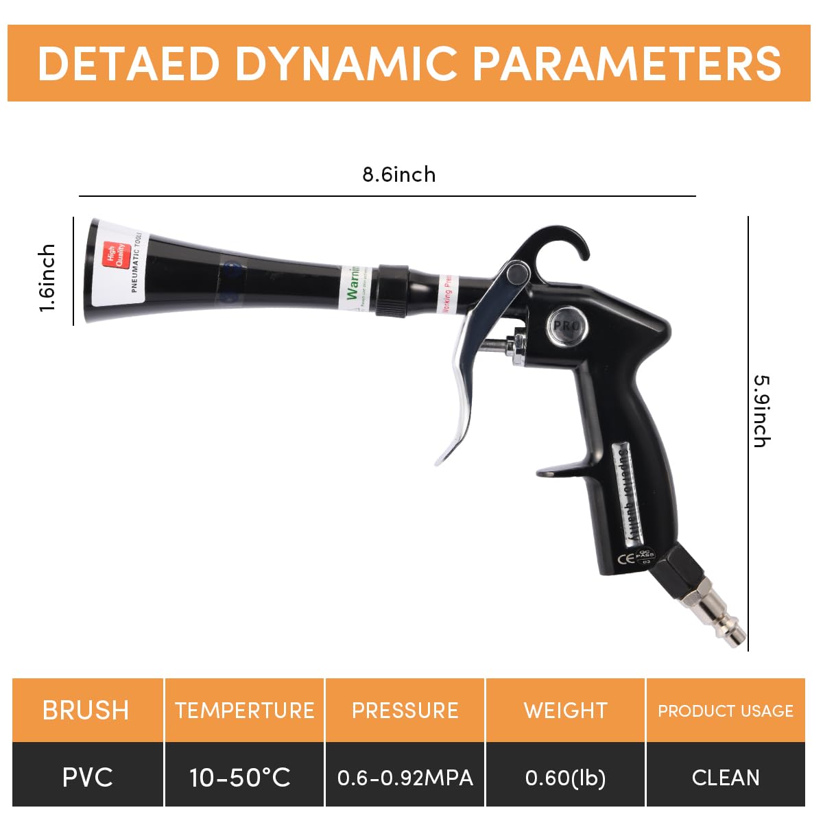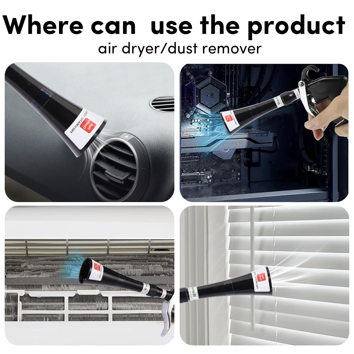 Tornado Air Blow Gun for Car Detailing - High Pressure Dry Cleaning Gun with Adjustable Brass Nozzle, Quickly Blasts Dust & Dirt, Works with Air Compressor