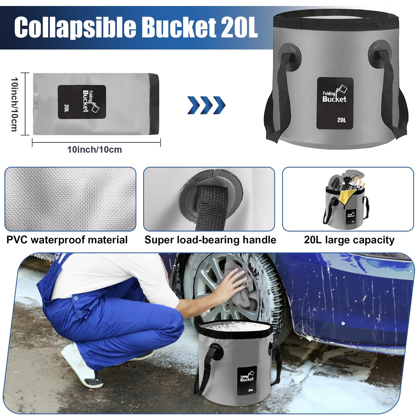 Viewsun 21Pcs Car Cleaning Kit with High Power Handheld Vacuum, Car Wash Mop with Long Handle, Bucket, Detailing Brush Set, Windshield Cleaner, Complete Interior Exterior Washing Supply for Men Women