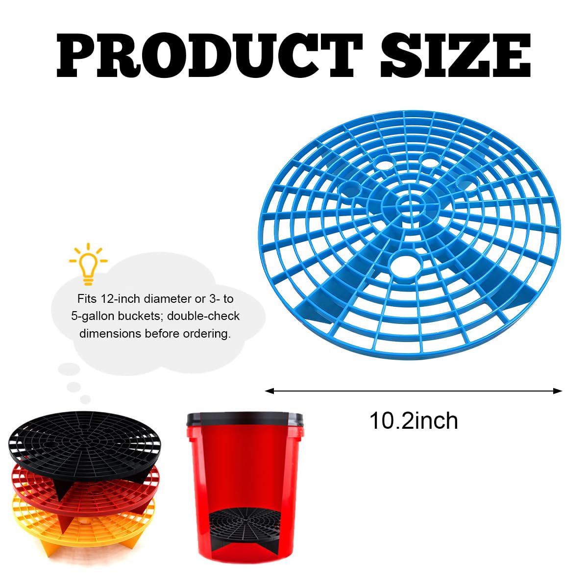 Specification: Material: Plastic Quantity: 2 PCS Color: Black+Red/ Red/ Black/ Yellow/ Blue Weight: 0.77 lb Size: 10.2 10.2 inches Feature: Durable, Practical, Filterable Fit Type: Universal Fit More information about the product: -It is lightweight and small, easy for you to carry and use. -It effectively filters debris from the water and improves the efficiency of the car wash. -It locks firmly to the bottom of the wash bucket, making grit hard to float up.