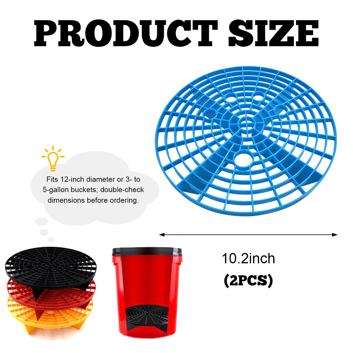 Specification: Material: Plastic Quantity: 2 PCS Color: Black+Red/ Red/ Black/ Yellow/ Blue Weight: 0.77 lb Size: 10.2 10.2 inches Feature: Durable, Practical, Filterable Fit Type: Universal Fit More information about the product: -It is lightweight and small, easy for you to carry and use. -It effectively filters debris from the water and improves the efficiency of the car wash. -It locks firmly to the bottom of the wash bucket, making grit hard to float up.
