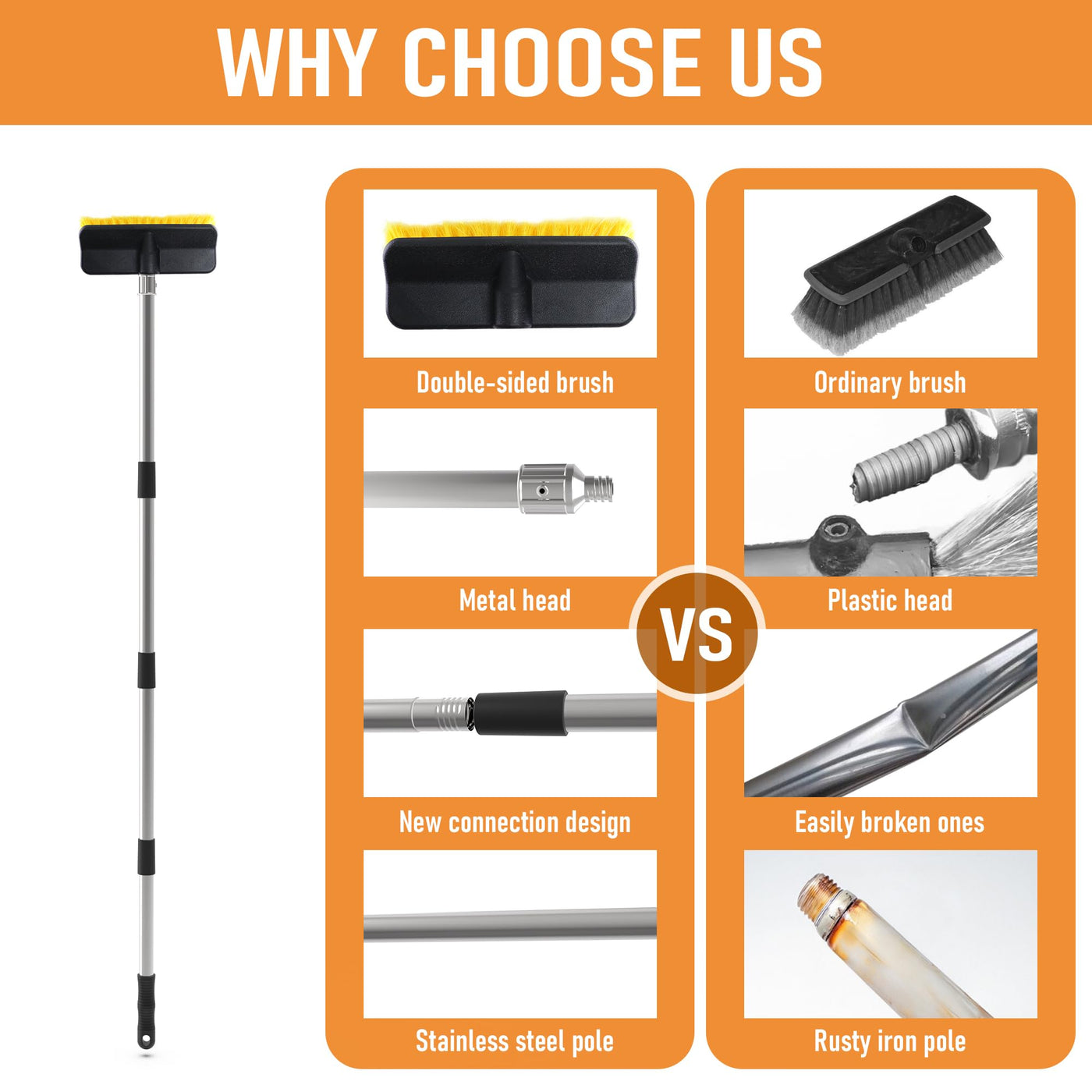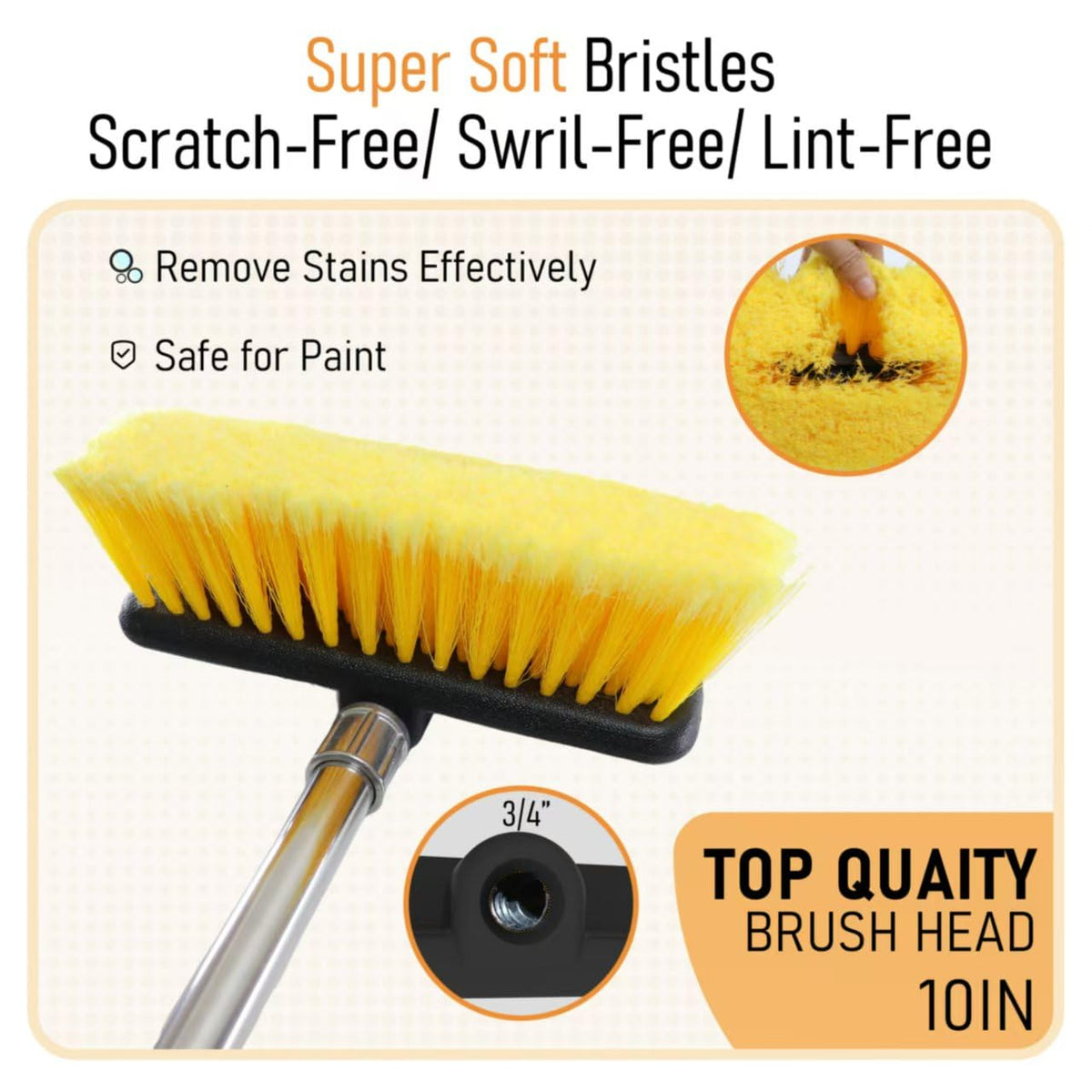 YULOOSI Car Wash Brush with 55'' Long Handle | Car Wash 10'' Dip Soft Brush | No Scratch Soft Bristle Brush for Car, RV, Boat, Solar Panel, House Siding, Snow, Floors Washing