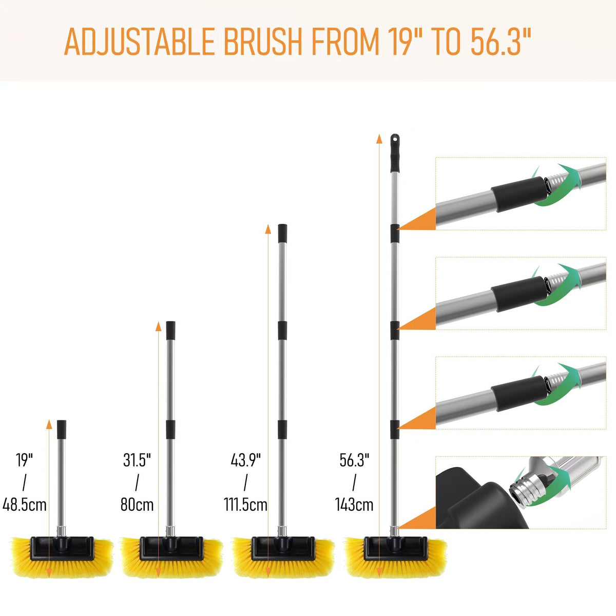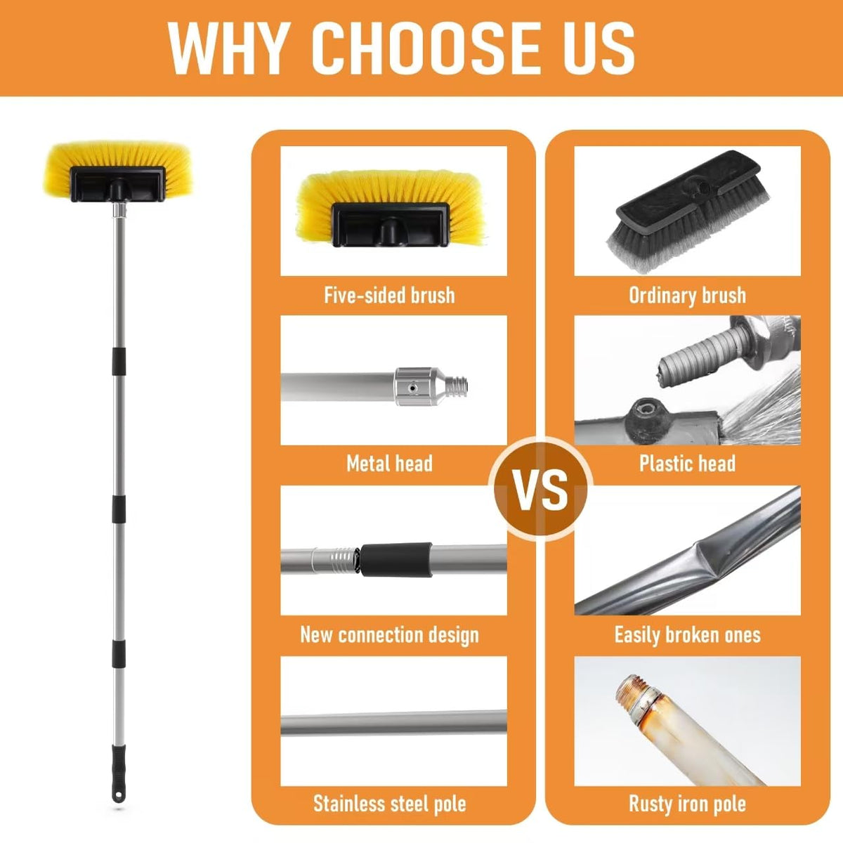 YULOOSI Car Wash Brush with 56'' Long Handle | Car Wash 12'' Dip Soft Five-Sided Brush | No Scratch Soft Bristle Brush for Car, RV, Boat, Solar Panel House Siding, Snow, Floors Washing