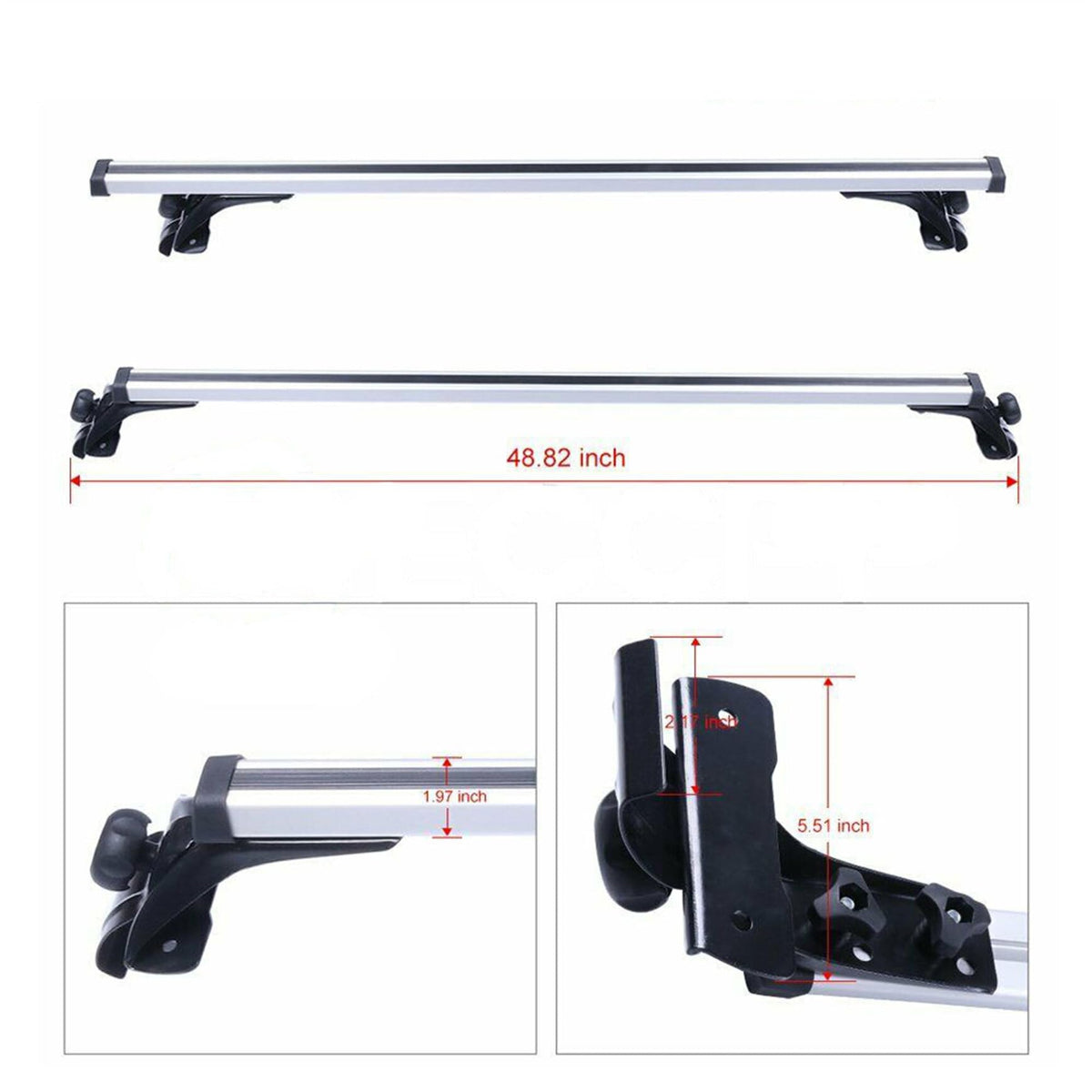 48 Inch Universal Car Top Roof Cross Bar Luggage Cargo Rack With 3 Kinds Clamp Silver Aluminum