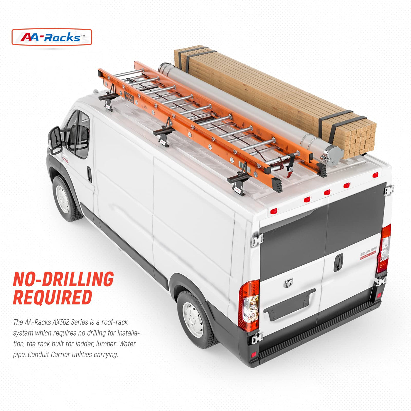 Aa Racks Model Ax302 Aluminum Van Ladder Roof Rack System Fits For 2013-On Ram Promaster/ 2015-On Transit - 3 Bar 72'', Black