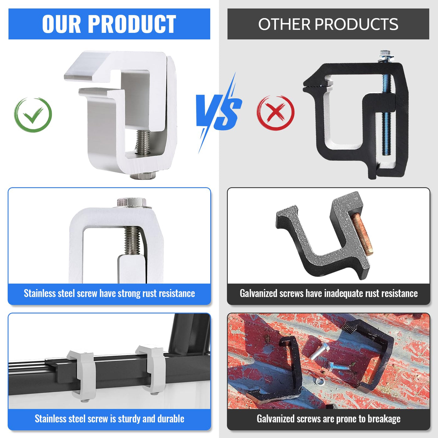 Q: What materials are used in the construction of this mounting clamp?A: The AA-Racks P-AC-08 Mounting Clamp is constructed from heavy-duty, rust-free aluminum, ensuring durability and longevity. It also features stainless steel hardware to withstand tough environmental conditions.