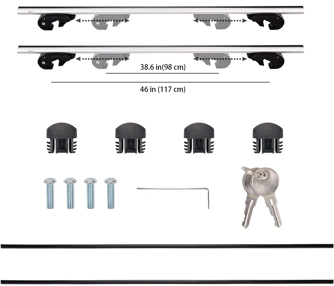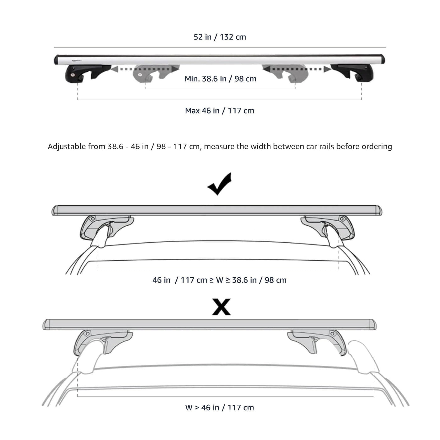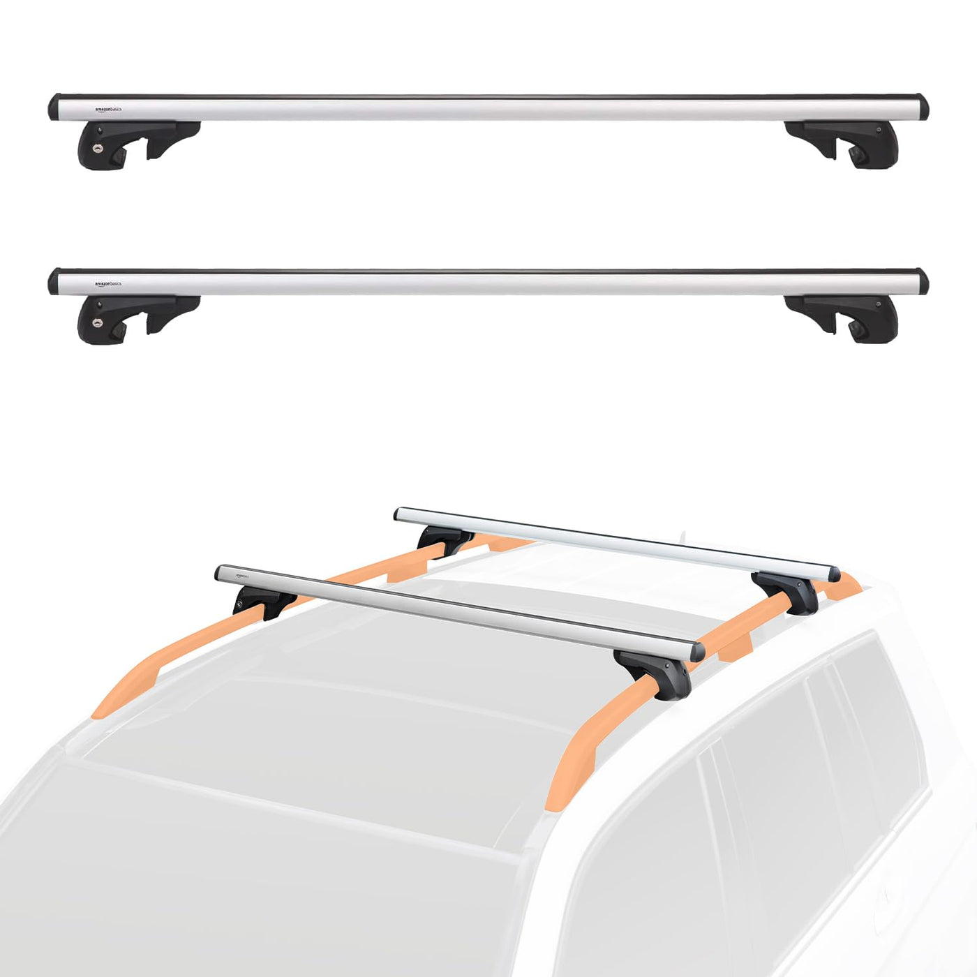 Amazon Basics Cross Rail Roof Rack, 52 Inches, Fits Up To 46'' Spans Between Raised Side Rails With Gap, Pack Of 2, Black/Silver