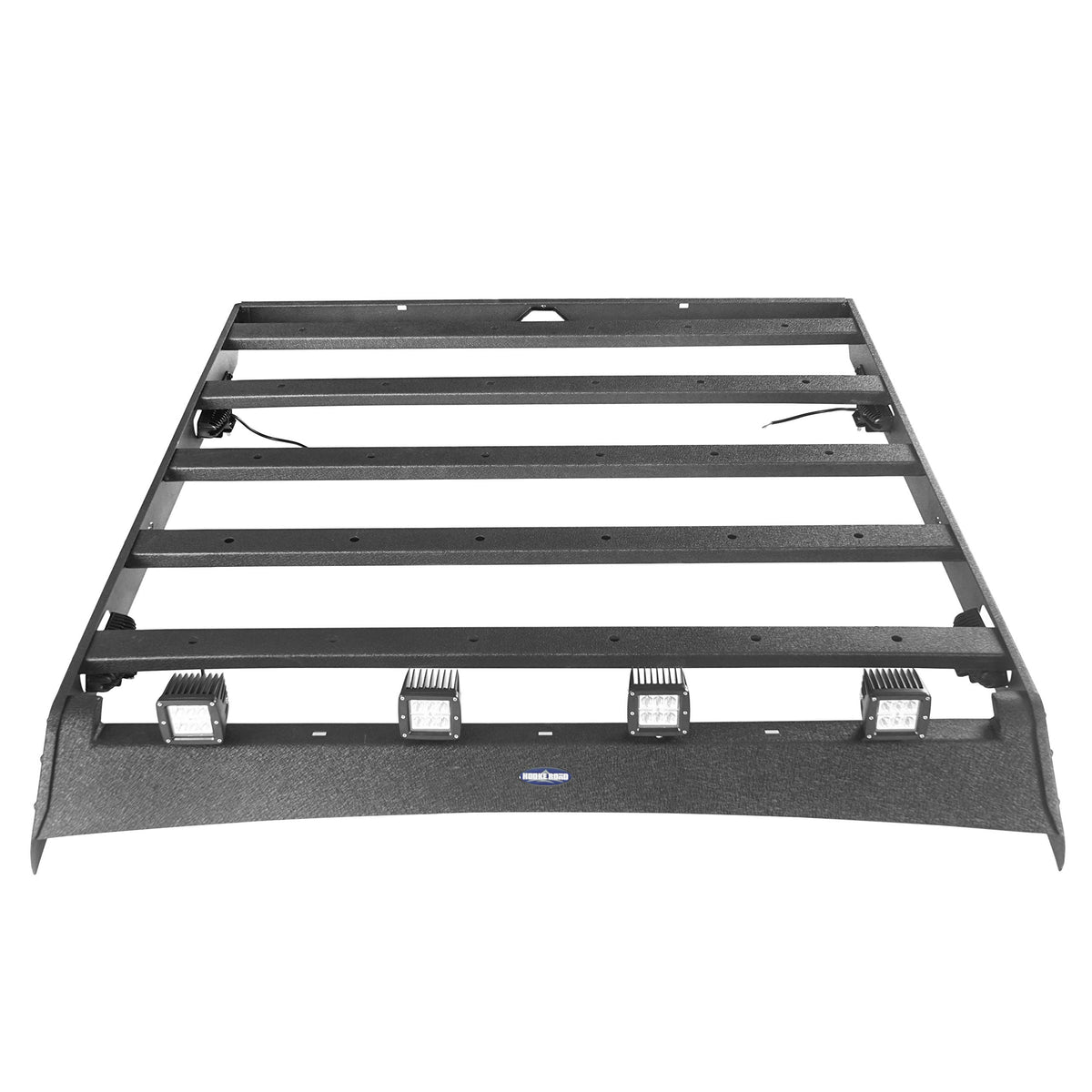 Q: Does the roof rack come with lights, and what type are they?A: Yes, the Hooke Road roof rack includes 4x 18w LED square spotlights and 4x 18w rectangle LED floodlights, enhancing visibility during off-road adventures.