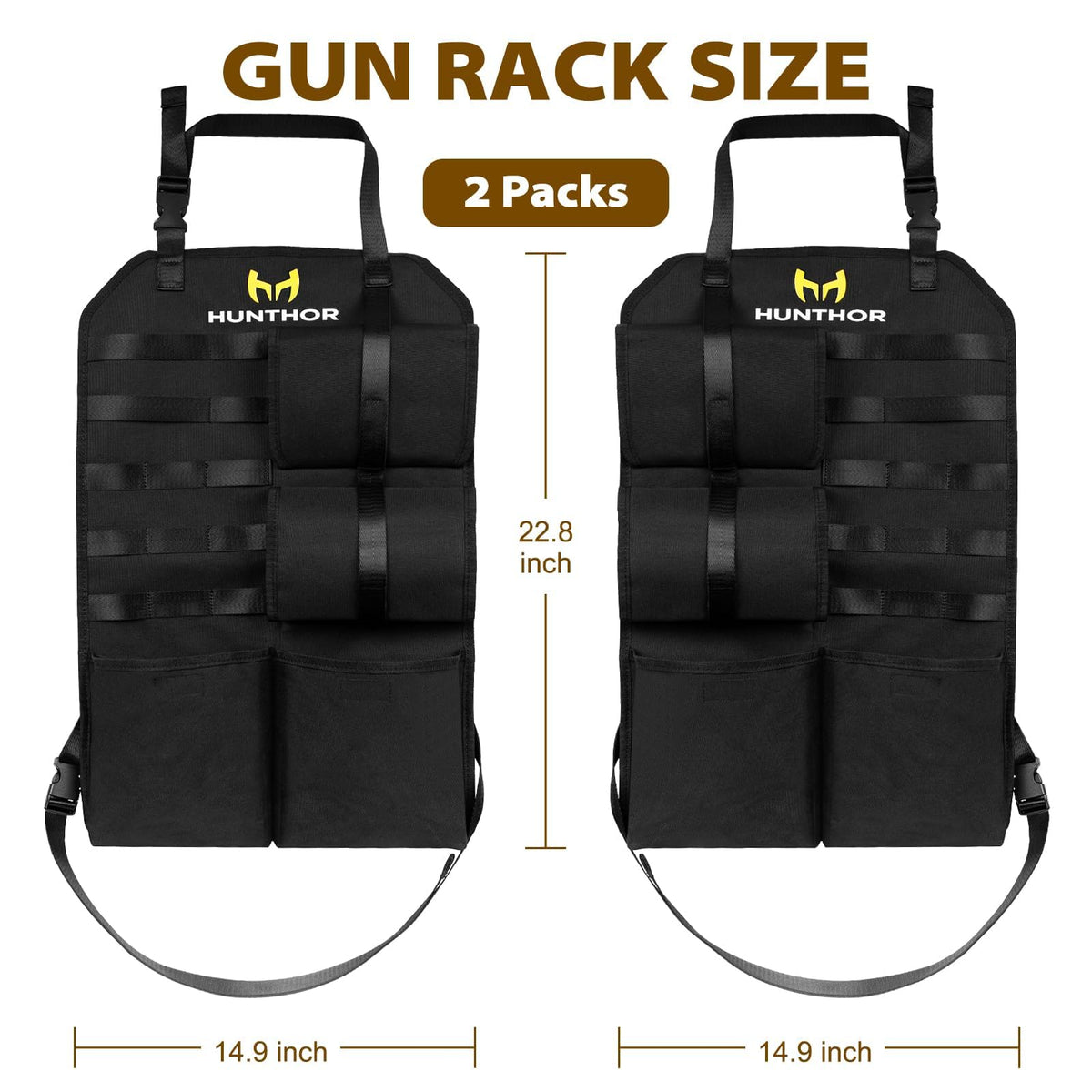 Hunthor Back Seat Gun Holder Will Be Perfect For Most Vehicle, Such As Sedan, Suv, Pickup, Jeep And So On Feature: 1. Be Durable With Heavy Duty 900D Cloth 2. Work Well With Easy To Take The Gun Or Place The Gun 3. Offer Sturdy Support For The Gun 4. Hold Two Guns And Other Hunting Accessories