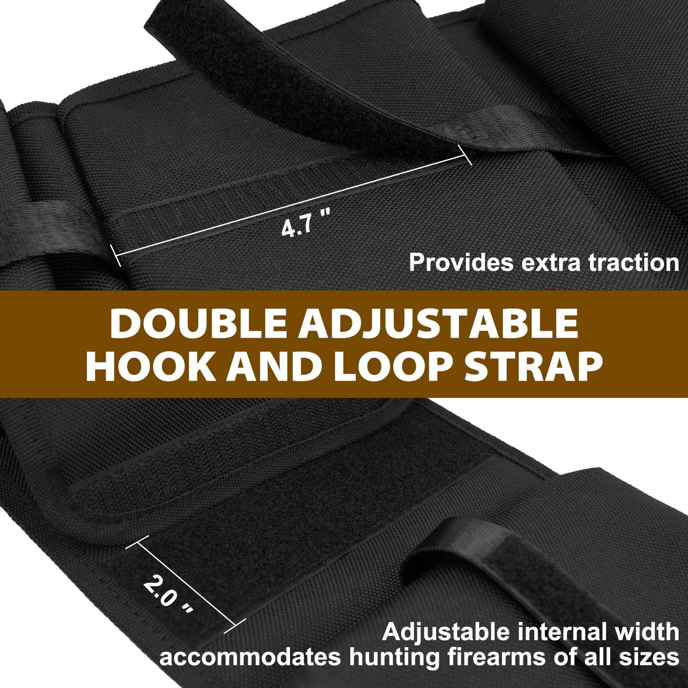 Q: How does the Hunthor Truck Gun Rack prevent guns from falling during travel?A: The gun rack features double adjustable hook and loop straps that provide sturdy support for the firearms, preventing them from falling while allowing you to adjust the storage size as needed.