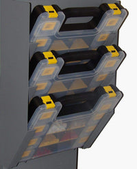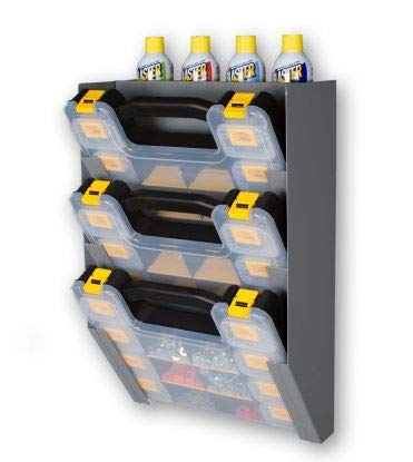 Q: How much weight can the KARGOMASTER tote holder support?A: The KARGOMASTER Kargo Master Hanging 3 Tote Holder has an item package weight of 21.10 pounds, indicating it is designed to support substantial weight while maintaining stability.