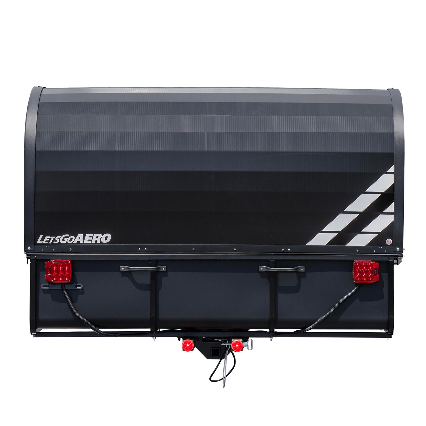 Q: What are the dimensions of the Let's Go Aero BlackBox PRO Enclosed Cargo Carrier?A: The Let's Go Aero BlackBox PRO has interior dimensions of 72"L x 32"W x 48"H, providing a spacious extra tall cargo area.
