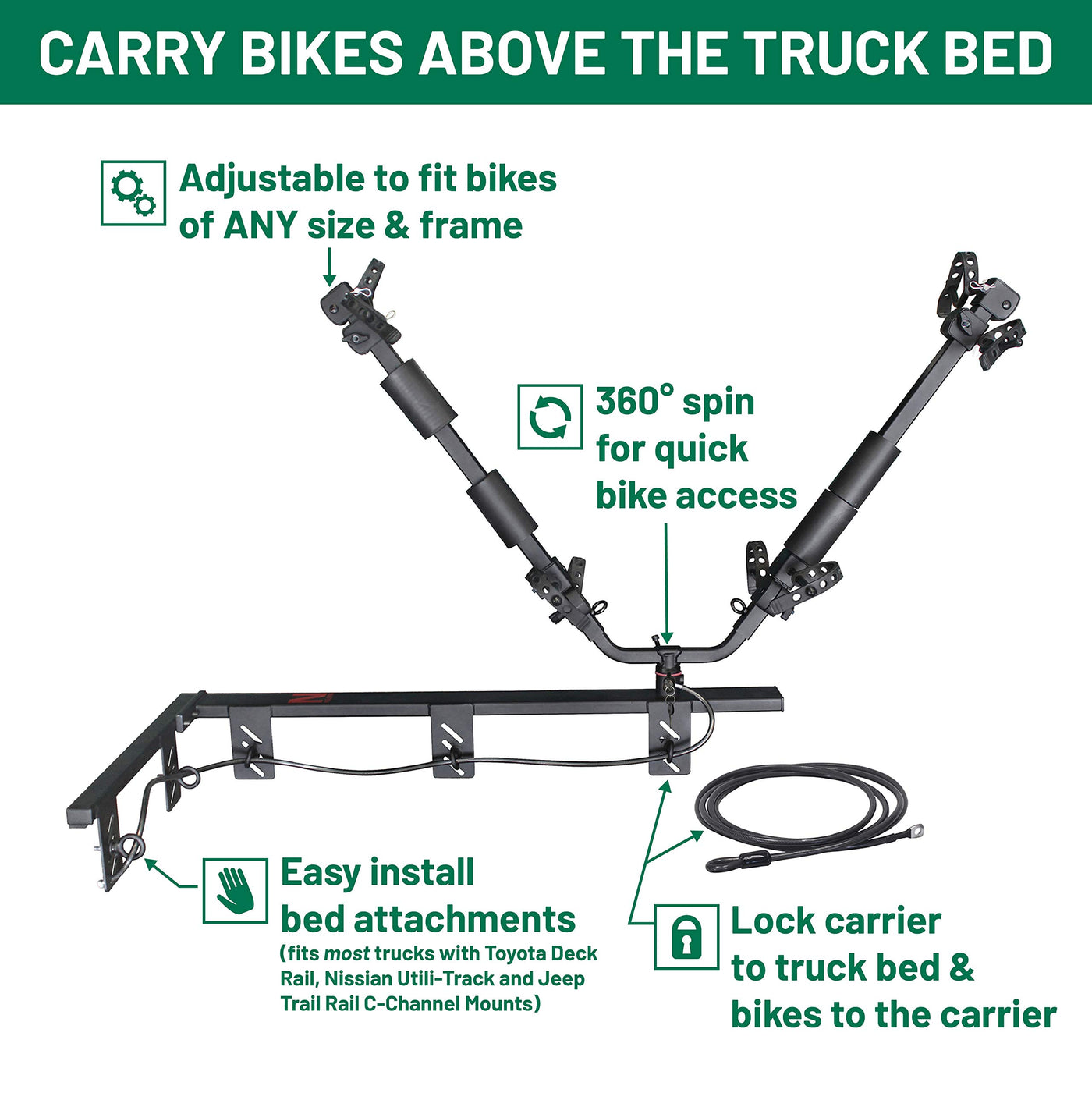 Let'S Go Aero Half Nelson Channel, 2-Bike Truck Bed Mount V-Rack Carrier For Toyota Deck Rail, Nissan Utili-Track, & Jeep Trail