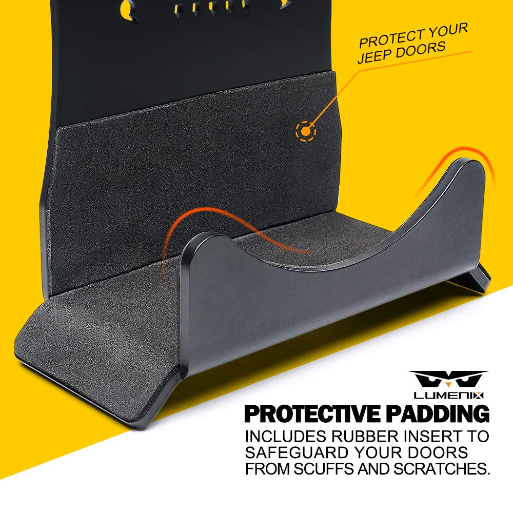 Q: Do the hangers protect the paint on my Jeep doors?A: Yes, the LUMENIX door hangers include a rubber protection pad design that safeguards the side paint of your Jeep door frame from damage.
