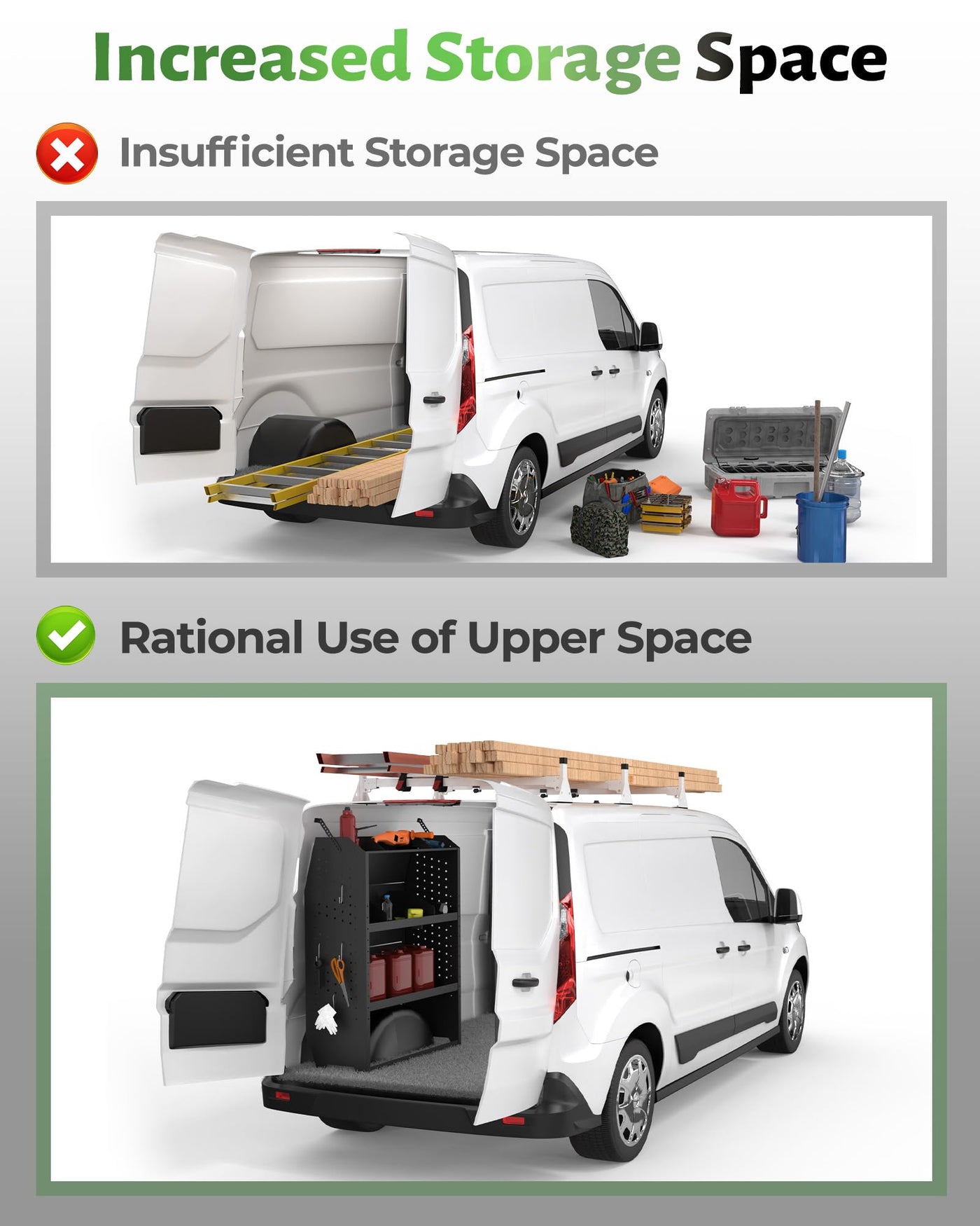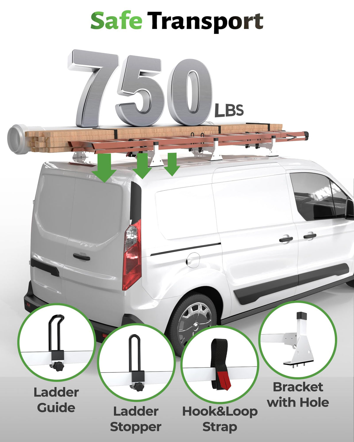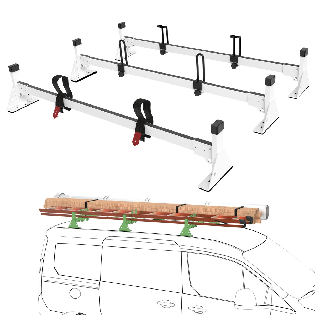 StarONE 46'' Van Ladder Rack,Van Roof Rack Fit for 2014-On Ford Transit Connect,White,3 Bars,750lbs