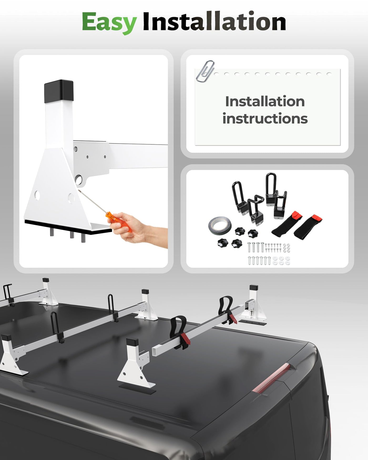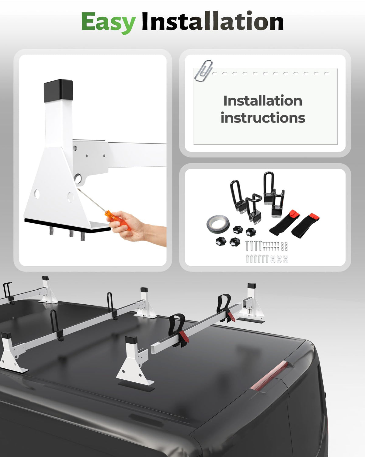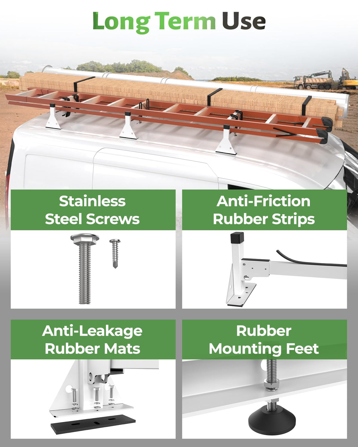 Reduced Wind Noise: Each post of the van ladder rack is topped with a rubber cap,effectively reducing wind noise at highway speeds for a quieter and more comfortable journey