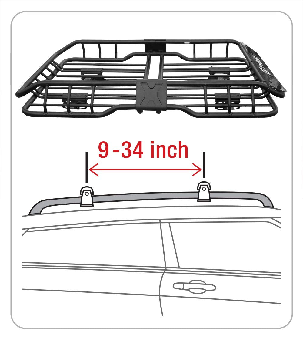 Frame Dimension: L47.25' x W36.6' x H5.9' | Stylish design makes your vehicle stand out on the road! Mounts to any existing vehicle roof rail cross bars to provide extra storage capacity up to 150 lbs. | Heavy duty 1 inch steel frame tube with black E-Coating for rust resistance and provides many tie-down point locations, great for securing gear with cargo nets. | Easy two-piece assembly. All mounting hardware included.(Your vehicle must have roof rails and cross bars installed to mount this basket). | TYGER 3 years no-hassle quality warranty for US customers against factory defect. Must be removed before auto car-wash.