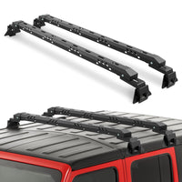 Our roof rack crossbar kayak cargo rack is the ultimate accessory for your Jeep Wrangler JK JL 4 door hardtop). Expertly designed with special clamping devices to ensure a secure fit and no need for drilling, these crossbars can be easily adjusted to any position on your hardtop. Stainless steel screws provide durability and ease of installation, giving your roof rack the longevity and stability you demand. Boasting multiple tie-down points, the cargo rack can effortlessly transport a range of items, from sporting equipment to luggage. Aerodynamically designed to minimize air resistance and noise, our crossbars ensure a smooth and efficient ride. Whether you're a frequent traveler or simply need to transport extra gear, our roof rack crossbar kayak cargo rack ensures you'll never run out of space or capacity again. Order yours today and experience the ultimate in functionality and convenience.