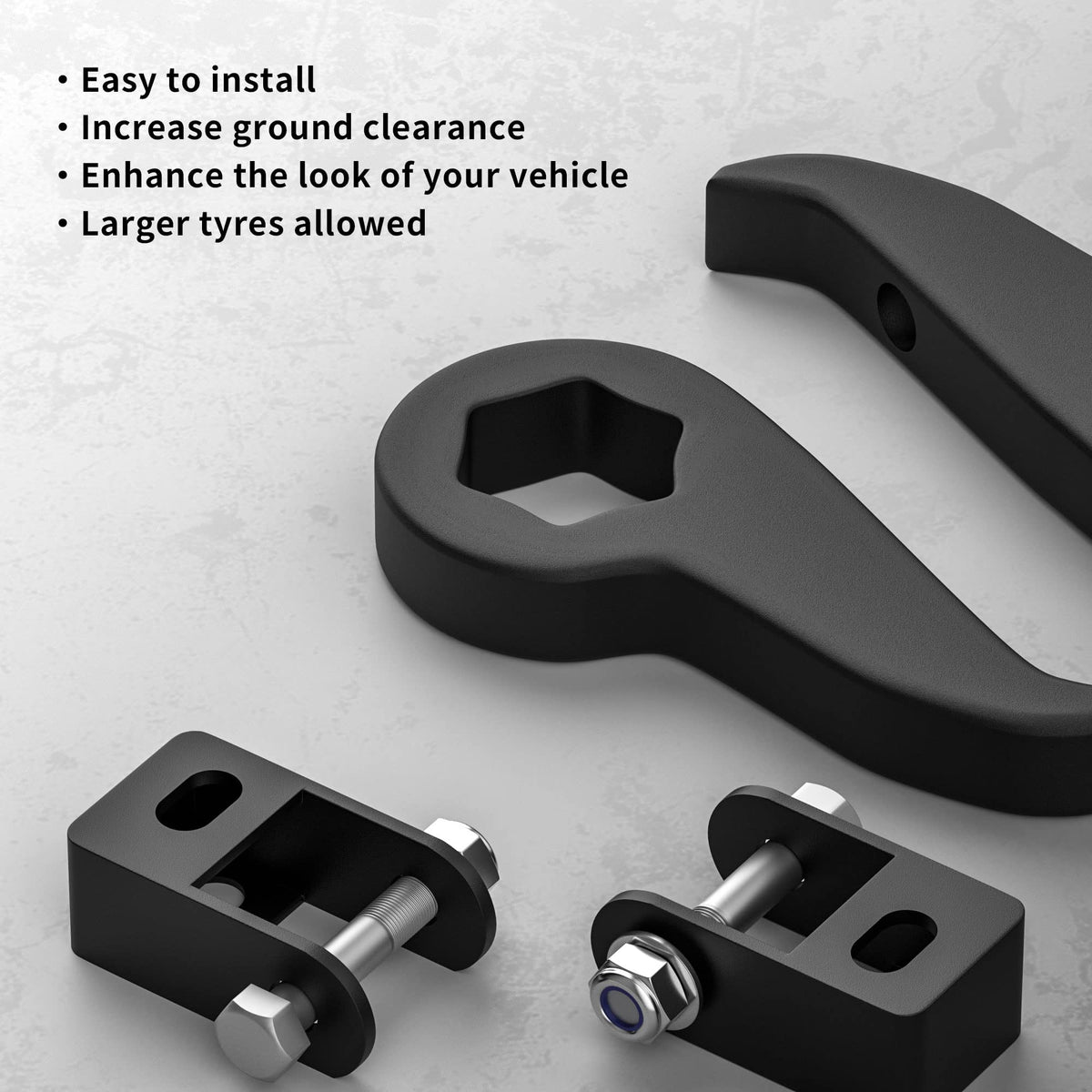Q: Is installation of the torsion bar lift kit difficult?A: No, installation can be completed within 1-2 hours without the need for cutting or drilling. Unlike other kits, it does not require strut or coil disassembly, making it easier for DIY enthusiasts.