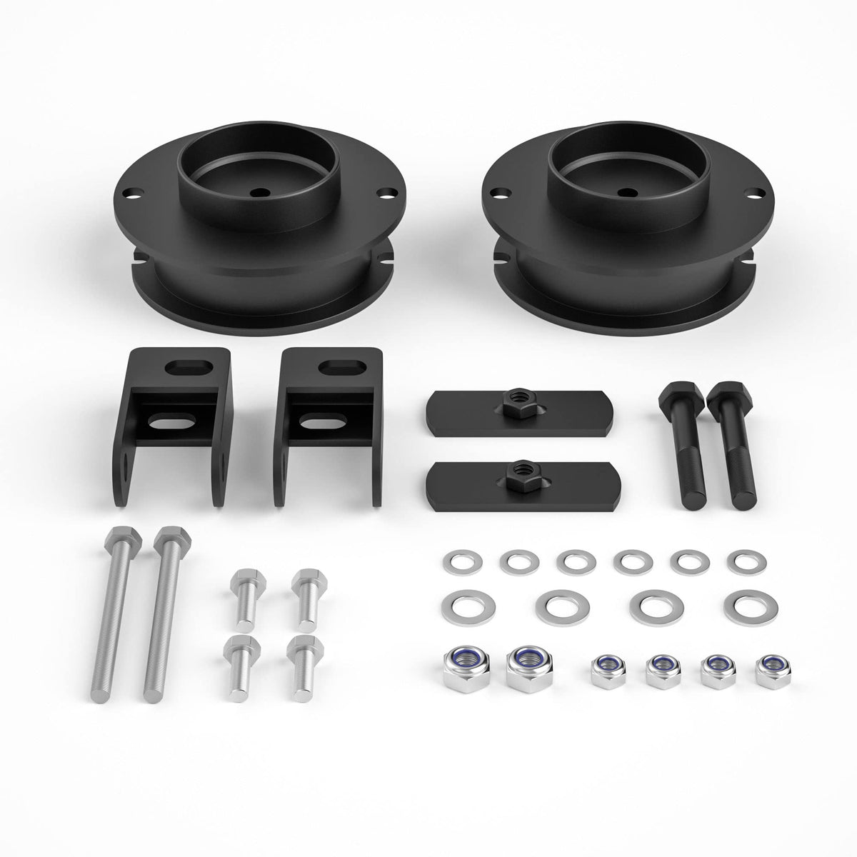 Q: Is the installation of the leveling kit easy?A: Yes, the installation can be completed within 1-2 hours and does not require cutting or drilling, nor does it necessitate strut/coil disassembly like other kits, making it user-friendly.
