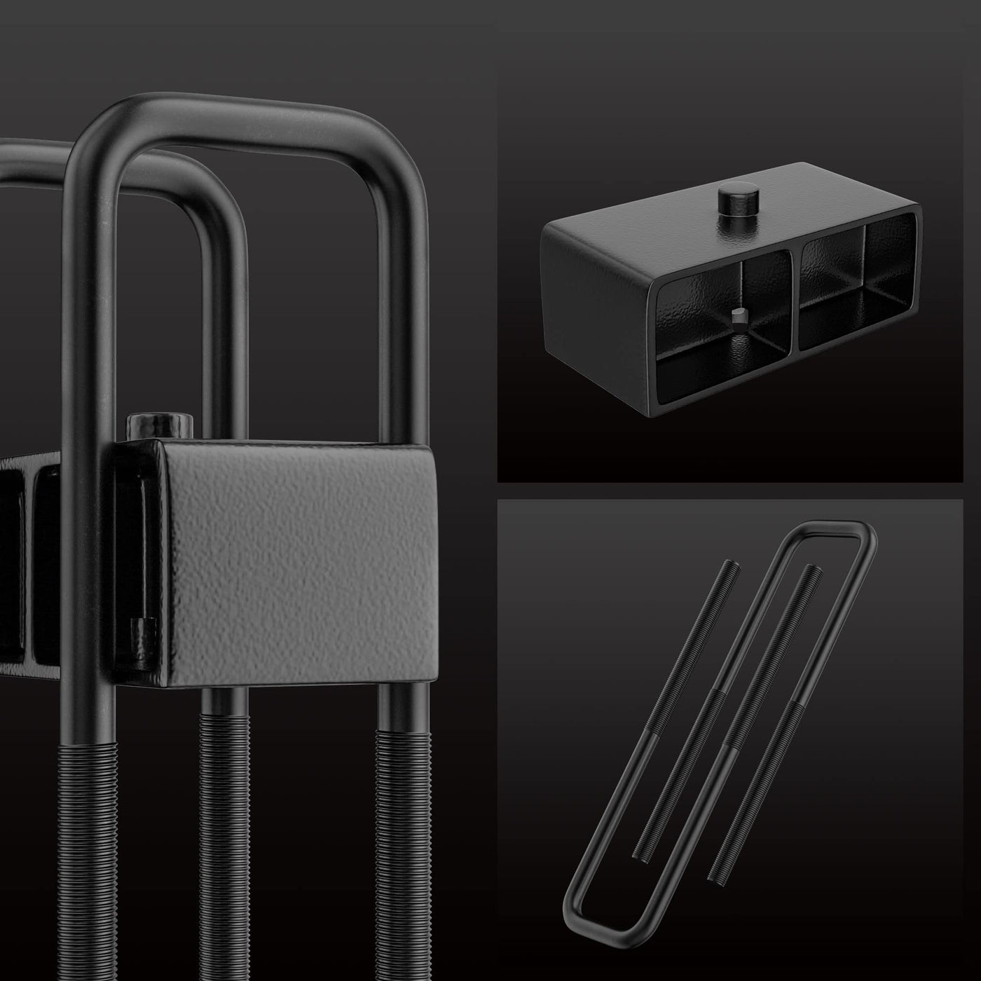 2'' Rear Leveling Lift Block Kit Compatible With 1999-2019 Silverado 1500 Gmc Sierra 1500, 2 Inch Black Leveling Lift Block Extended Square U-Bolts