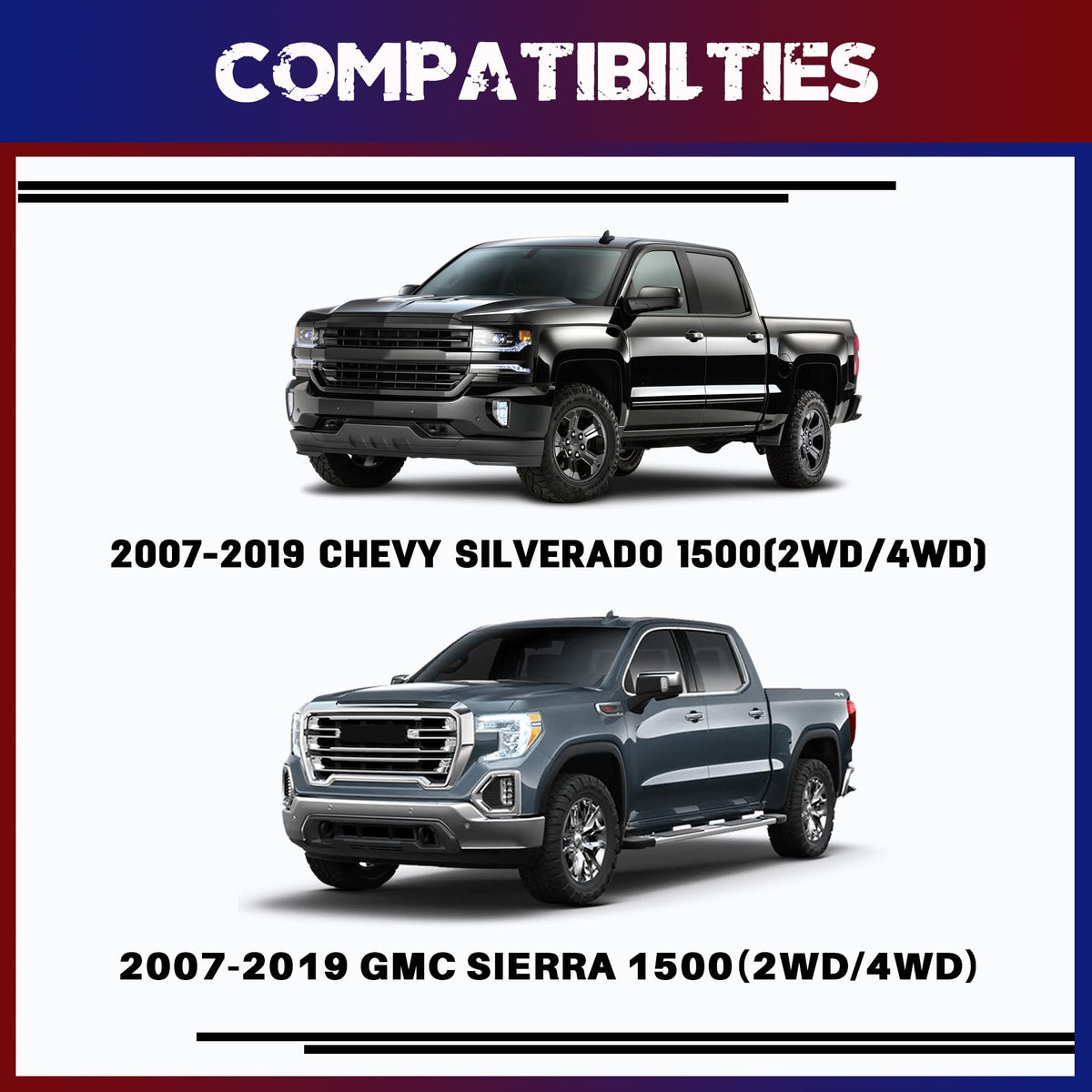 Q: Is this leveling kit compatible with my 2007-2020 Chevy Silverado 1500 or GMC Sierra 1500?A: Yes, this leveling kit is specifically designed for compatibility with 2007-2020 Chevy Silverado 1500 and GMC Sierra 1500 Pickup models.