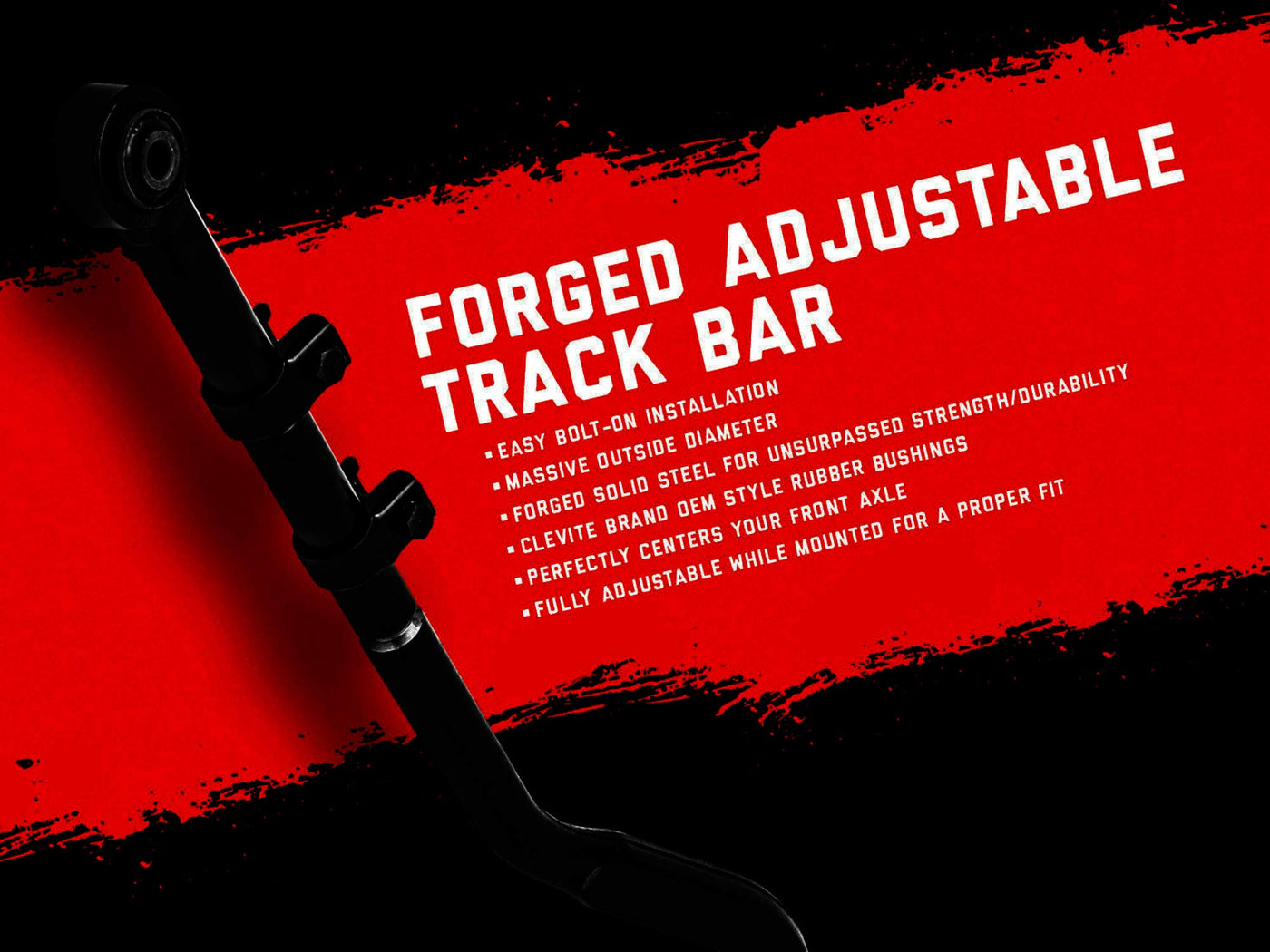 When you're way off the beaten path the last thing you should worry about is how you're getting home. Introducing Rough Country's Forged Adjustable Track Bar for Jeep XJs, ZJs and MJs. This massive 16lb Track Bar is nearly twice the weight of your factory Track bar, offering you unparalleled support and the ultimate peace of mind in any driving situation. For those who are serious about flexing, crawling, and pushing your Jeep to the limits, Rough Country's Forged Adjustable Track Bar is a must. This new track bar is made of forged steel and features rubber Cleveite bushings and a beefy construction that will dwarf stock equipment. This design allows the bar to keep your axles tame even under pure off-road torture. Best of all, it's simple to install and fully adjustable on the vehicle; meaning no removal required, no trial and error lining it up, and no more wasted time just to dial in your bar. All Rough Country forged Track Bars ship with a Lifetime Replacement .