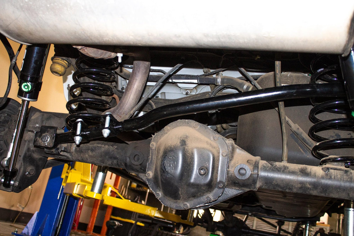 The RSO Suspension Beast Forged Adjustable Track Bars are an absolute MUST if you have or are planning a lift. Fine adjustment threads make these track bars adaptable for precise axle positioning. The OE factory track bar’s nonadjustable rigid nature makes it vulnerable to create alignment problems, and improper suspension and sway bar connection operation. The RSO Suspension Forged Beast track bar is over 230% stronger than the OE factory track bar. Constructed using forged steel, premium rubber bushings and OE bends for a hassle-free install and long service life of quiet operation. Finished in a black powder coat for ultimate corrosion resistance and a limited lifetime manufacturer warranty on workmanship/structure, 5 years on the components, and 1 year on the finish/coating.